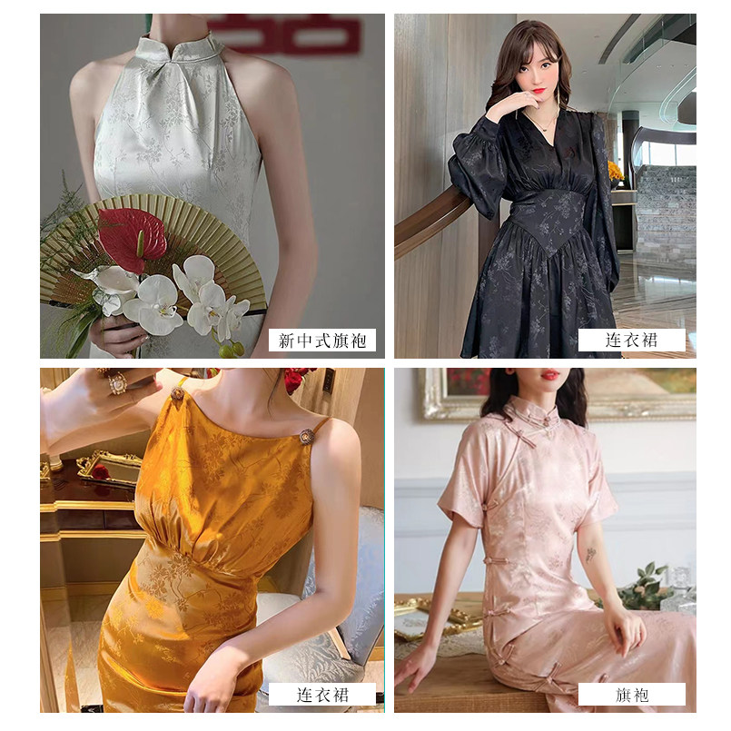 花枝提花绸缎布料夏季 古风汉服旗袍复古中国风暗花织锦缎面料 薄款