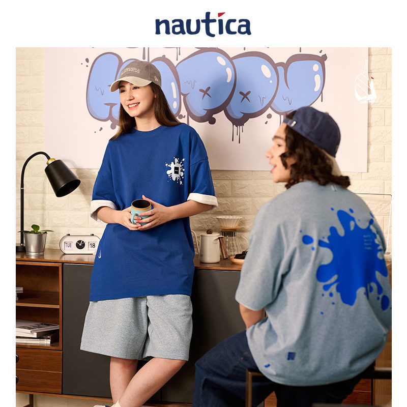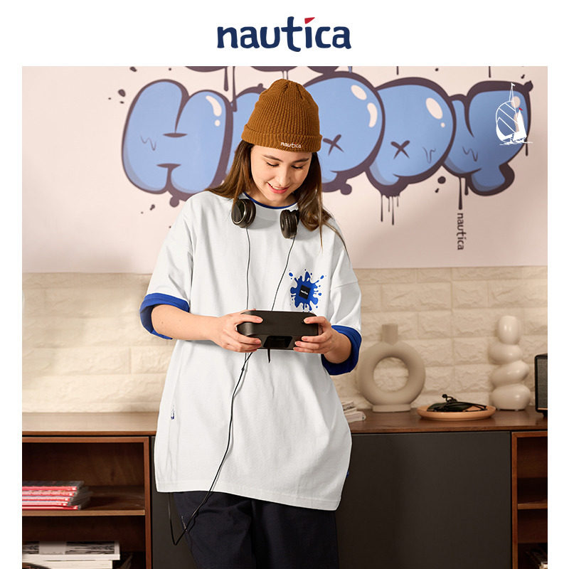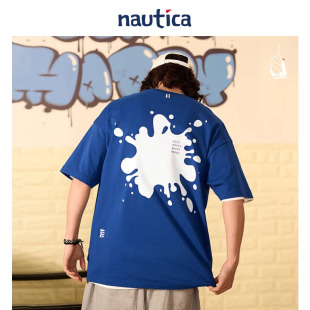 白帆日系无性别泼墨印花短袖 nautica 圆领T恤TW3219 官方正品