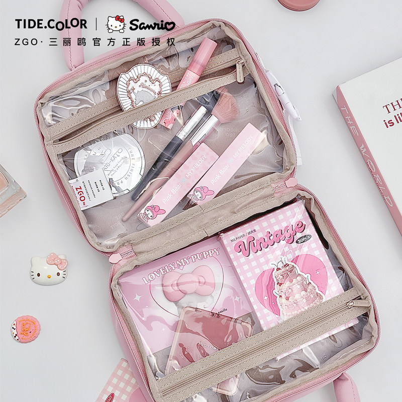 hellokitty联名手提洗漱包女 凯蒂猫粉色化妆包大容量便携收纳包