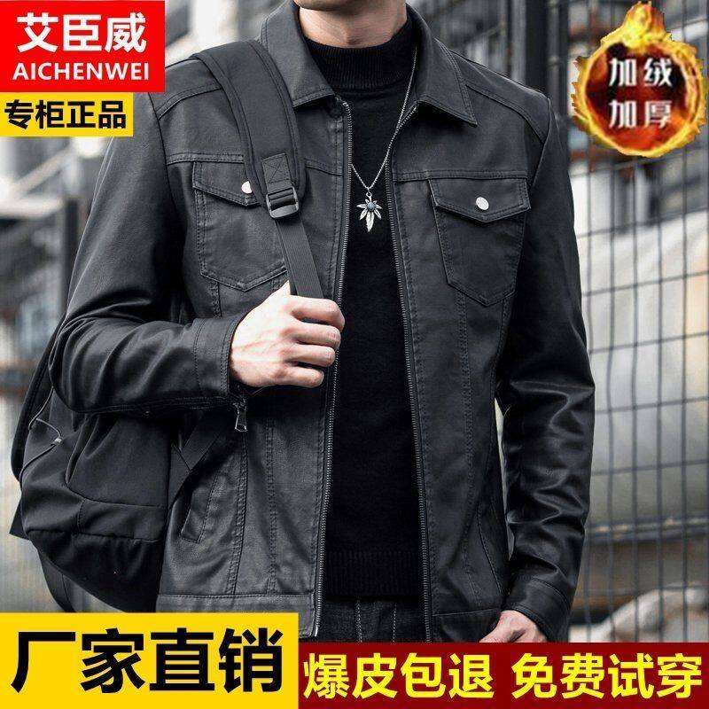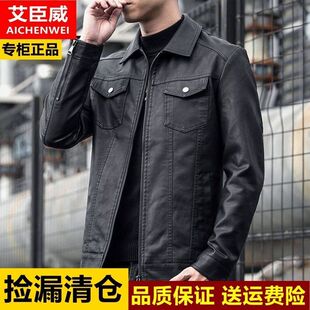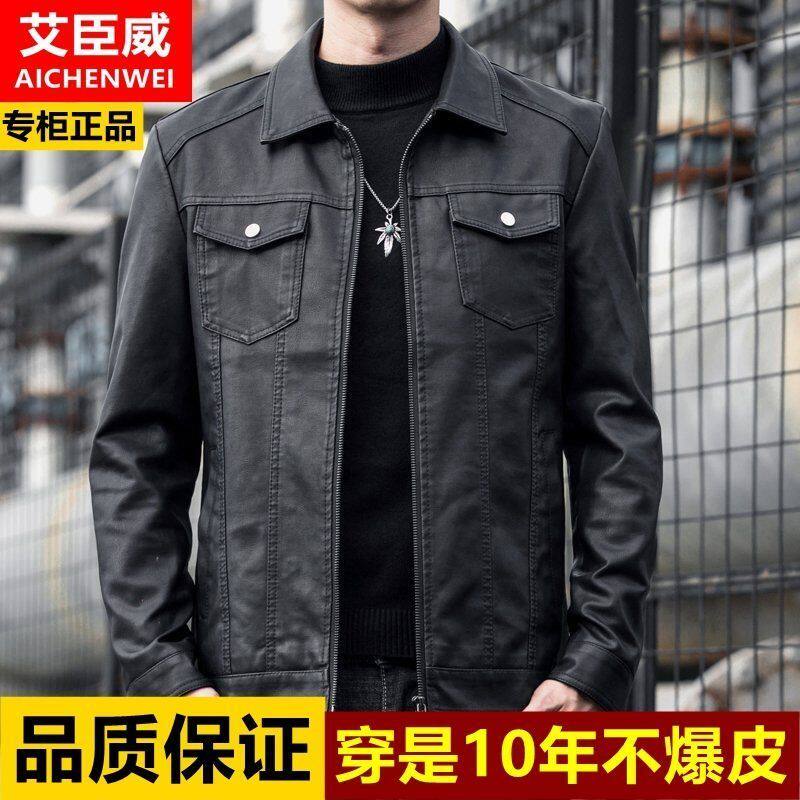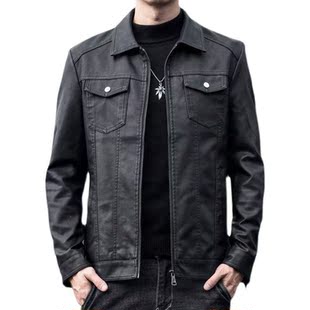 薄款 潮流机车皮夹克中年男士 休闲外套男 高端皮衣男韩版 2022春秋款