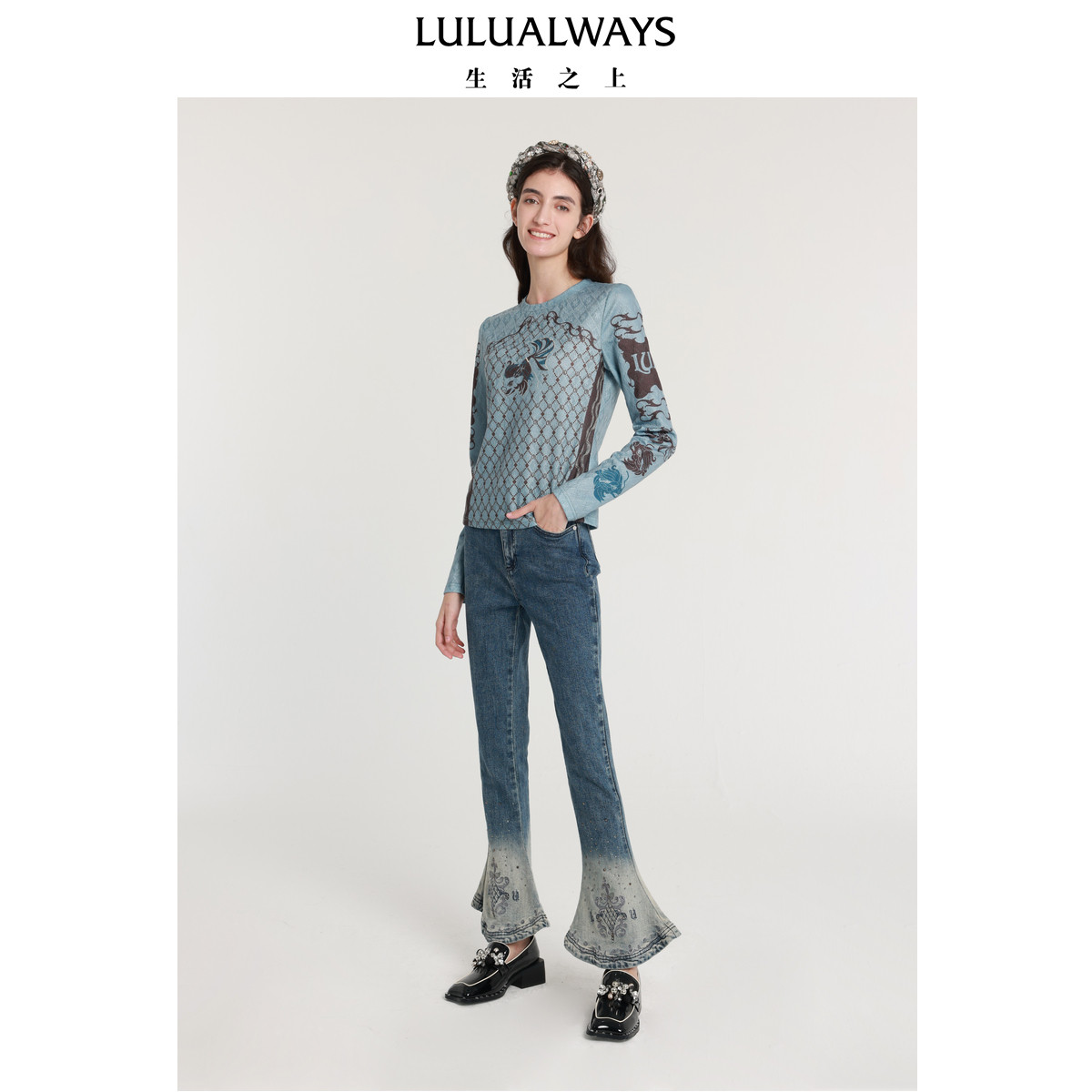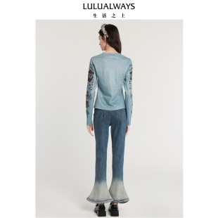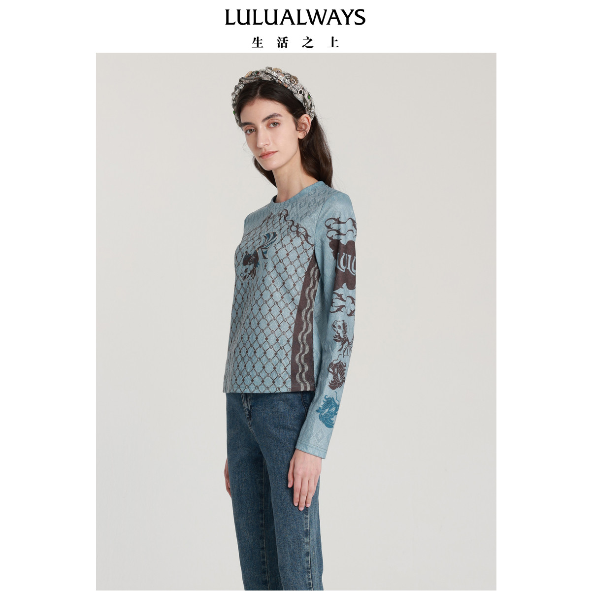 打底衫 LULUALWAYS我爱露露新款 短款 印花圆领修身 时尚