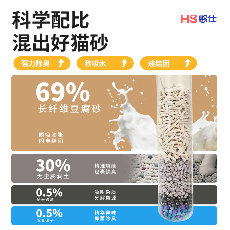 憨仕白茶茶多酚混合猫砂豆腐膨润土植物幼猫除臭低尘猫沙子三合一