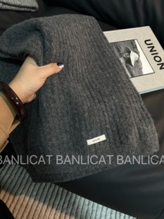 高品质秋冬保暖韩版 含羊毛混纺深灰色围巾男女情侣礼物披肩围脖礼