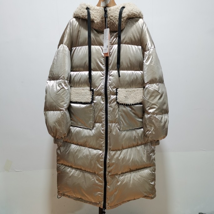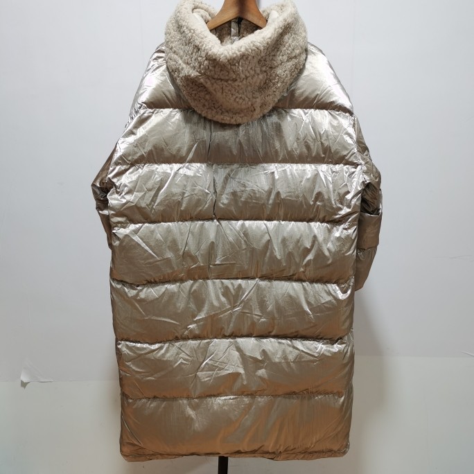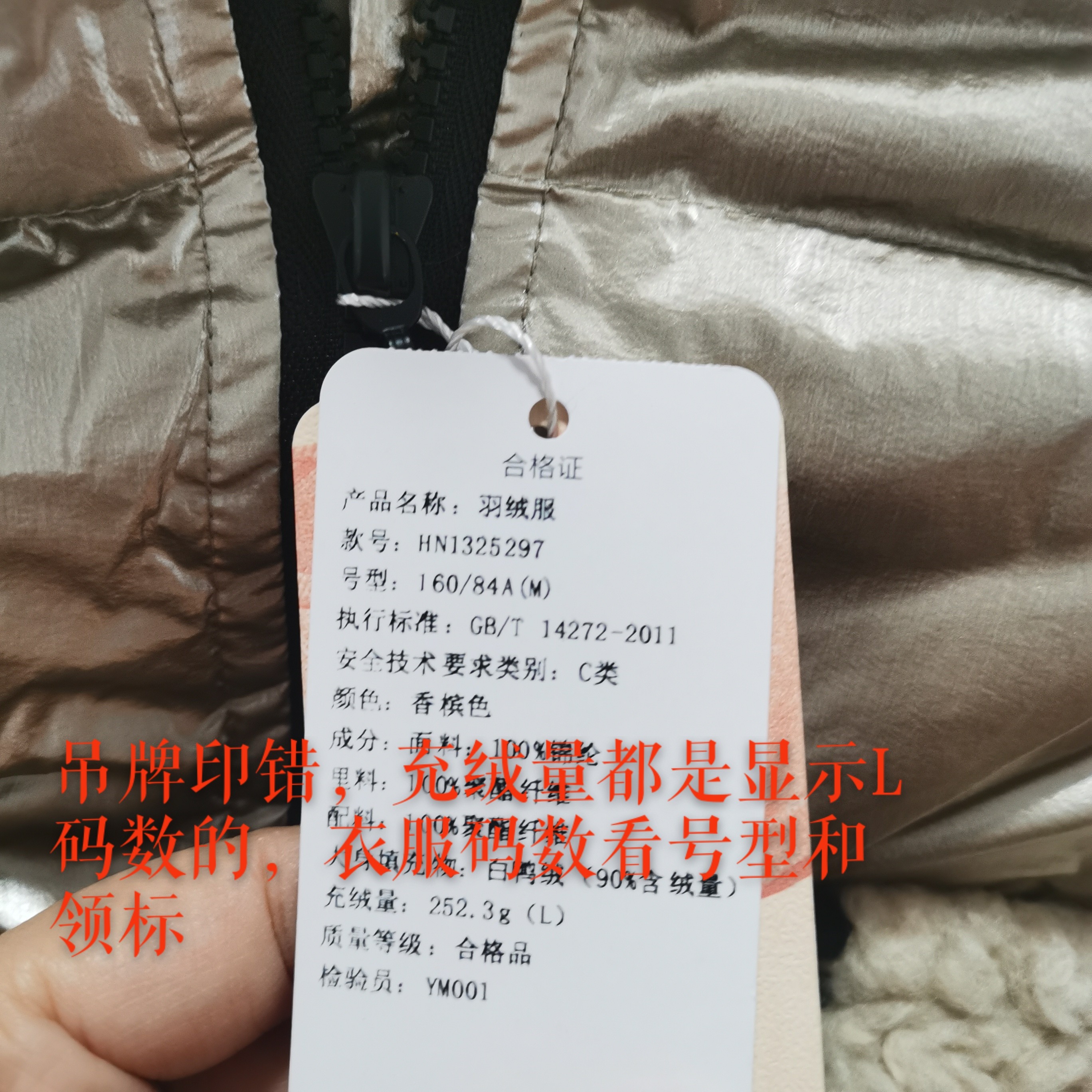 茵换标新款 中长加厚亮面羽绒服外套5297 女冬香槟色白鸭绒90绒时尚