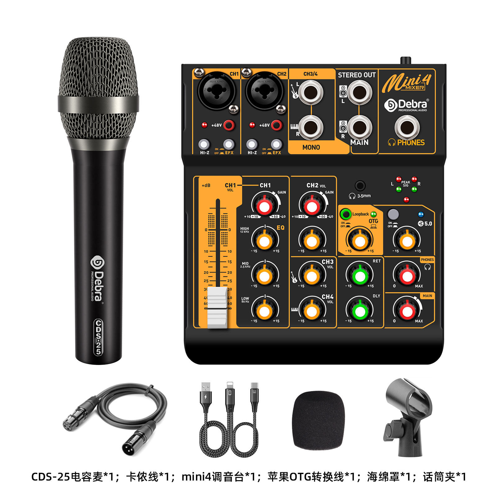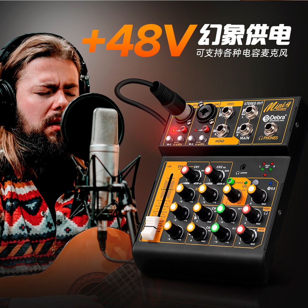 得普声UF4 M四路调音台电脑录音电视K歌直播家用KTV话筒蓝牙混响