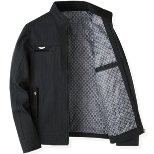 夹克衫 爸爸纯棉外套春秋季 立领全棉上衣中老年人男士 秋装 中年男装