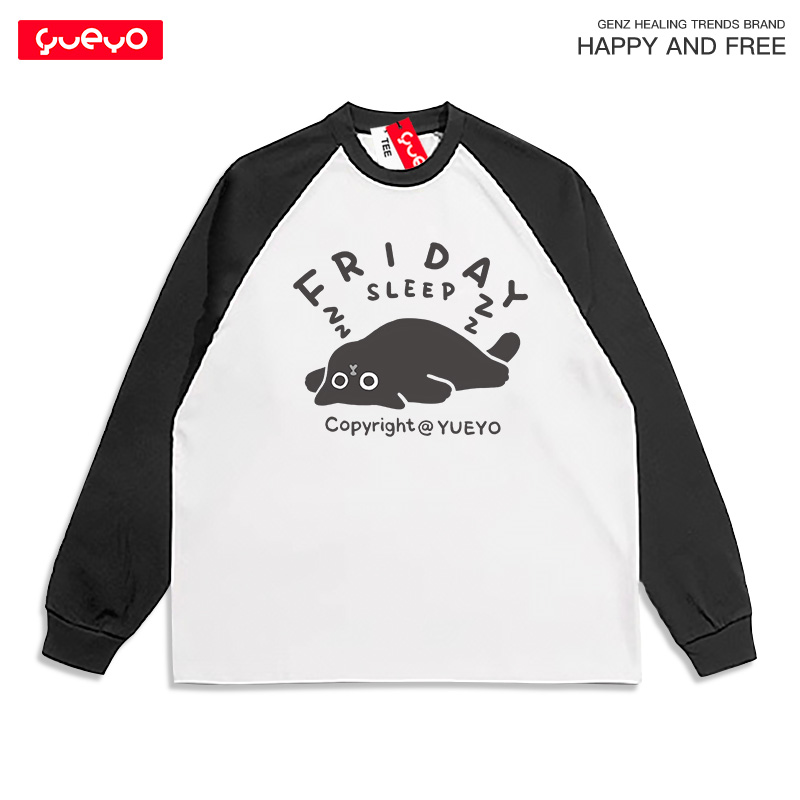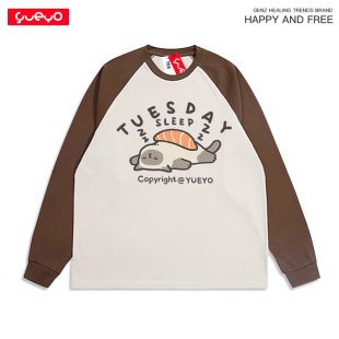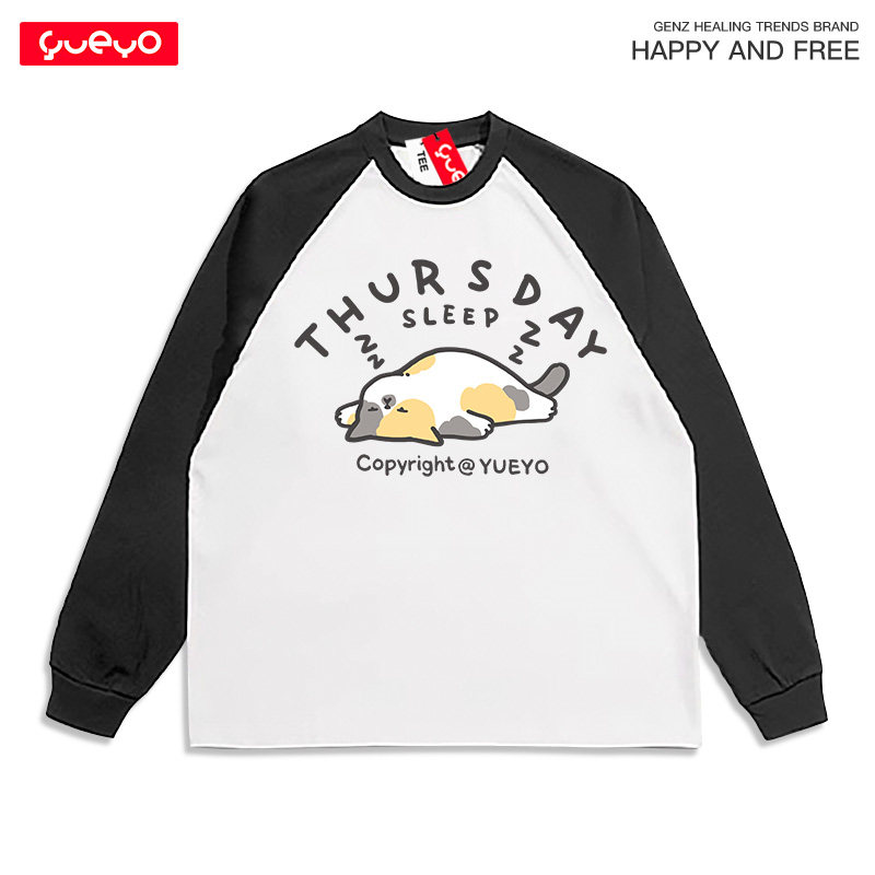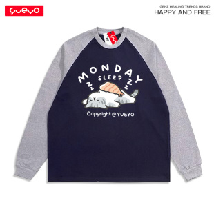 拼色长袖 sleep周一睡觉 插肩T恤男重磅纯棉 Monday 悦游