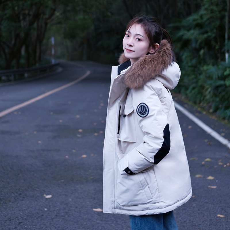 极寒保暖加厚毛领中长连帽羽绒服工装 波司登奥莱冬情侣款 鹅绒