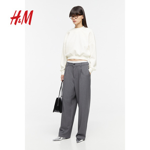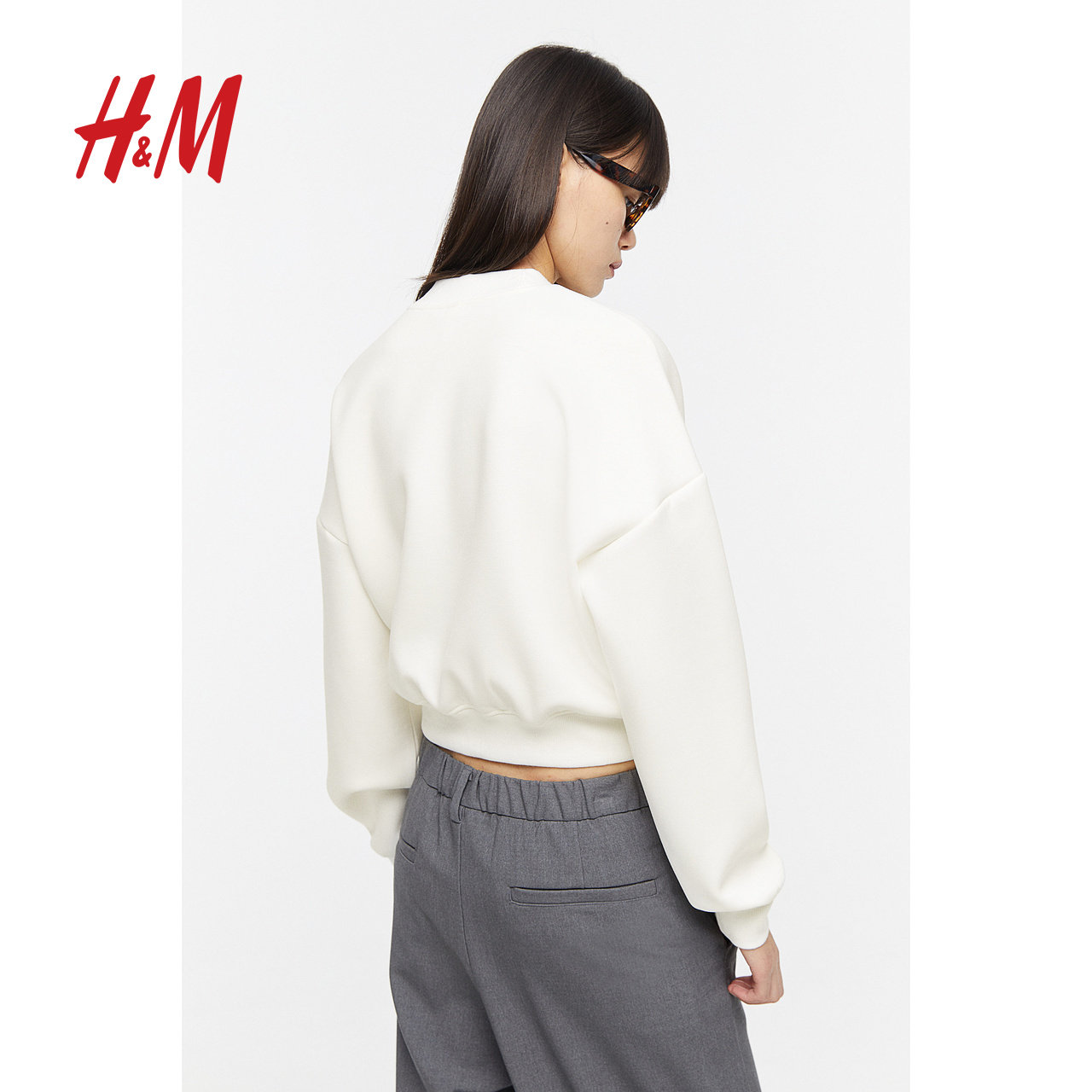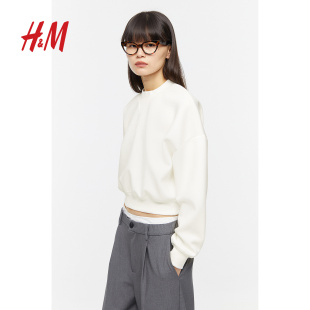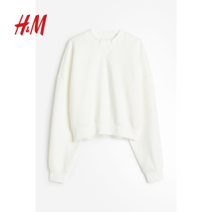 长袖 HM女装 简约字母图案短款 时尚 上衣1218254 卫衣春季