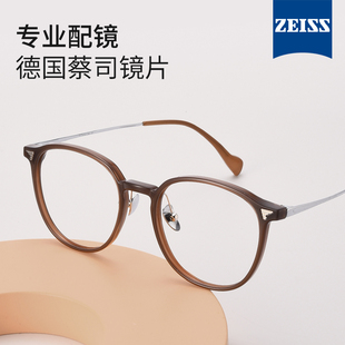 专业网上配镜片纯钛茶色近视眼镜框睛架女可配度数超轻防蓝光素颜