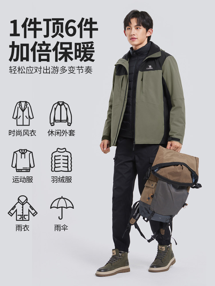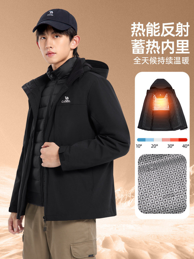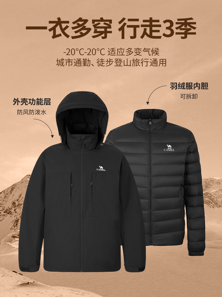 骆驼三合一夹克羽绒服外套男女款 保暖加厚羽绒内胆户外旅游登山服