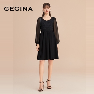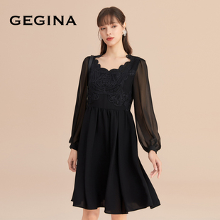 裙子女商场同款 A字连衣裙蕾丝点缀中长款 年新款 GEGINA吉吉娜女装