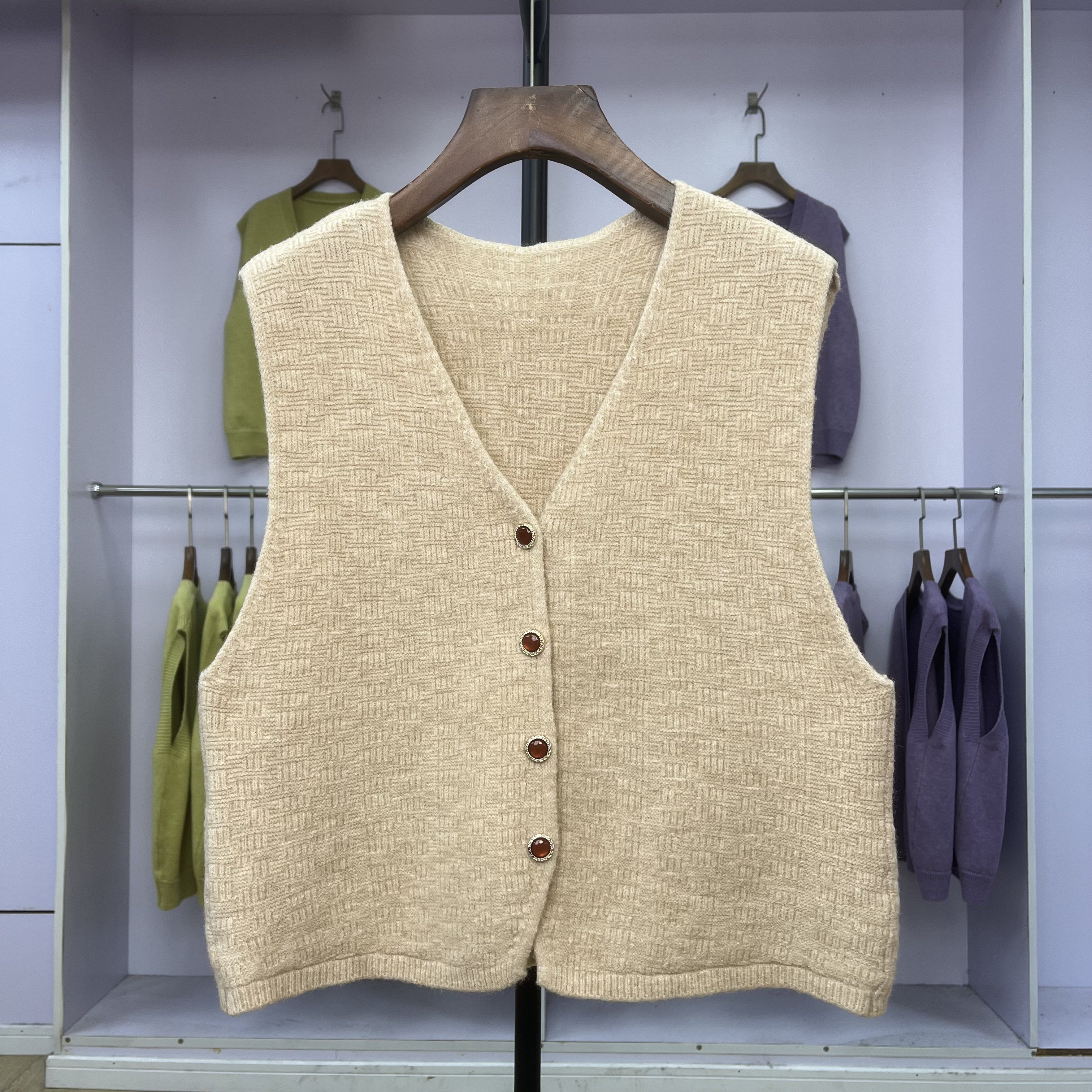 简约无袖 375 新款 针织马甲女春季 毛线坎肩叠穿背心马夹女 V领开衫