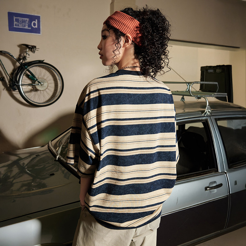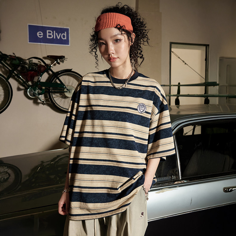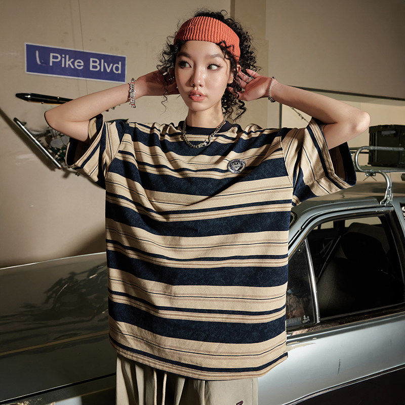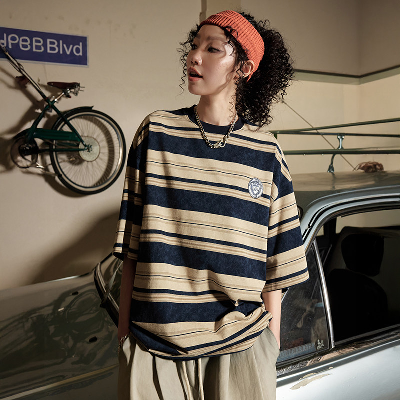 新款 Nuthink美式 体恤2025夏季 T恤情侣男女潮牌半袖 复古条纹短袖