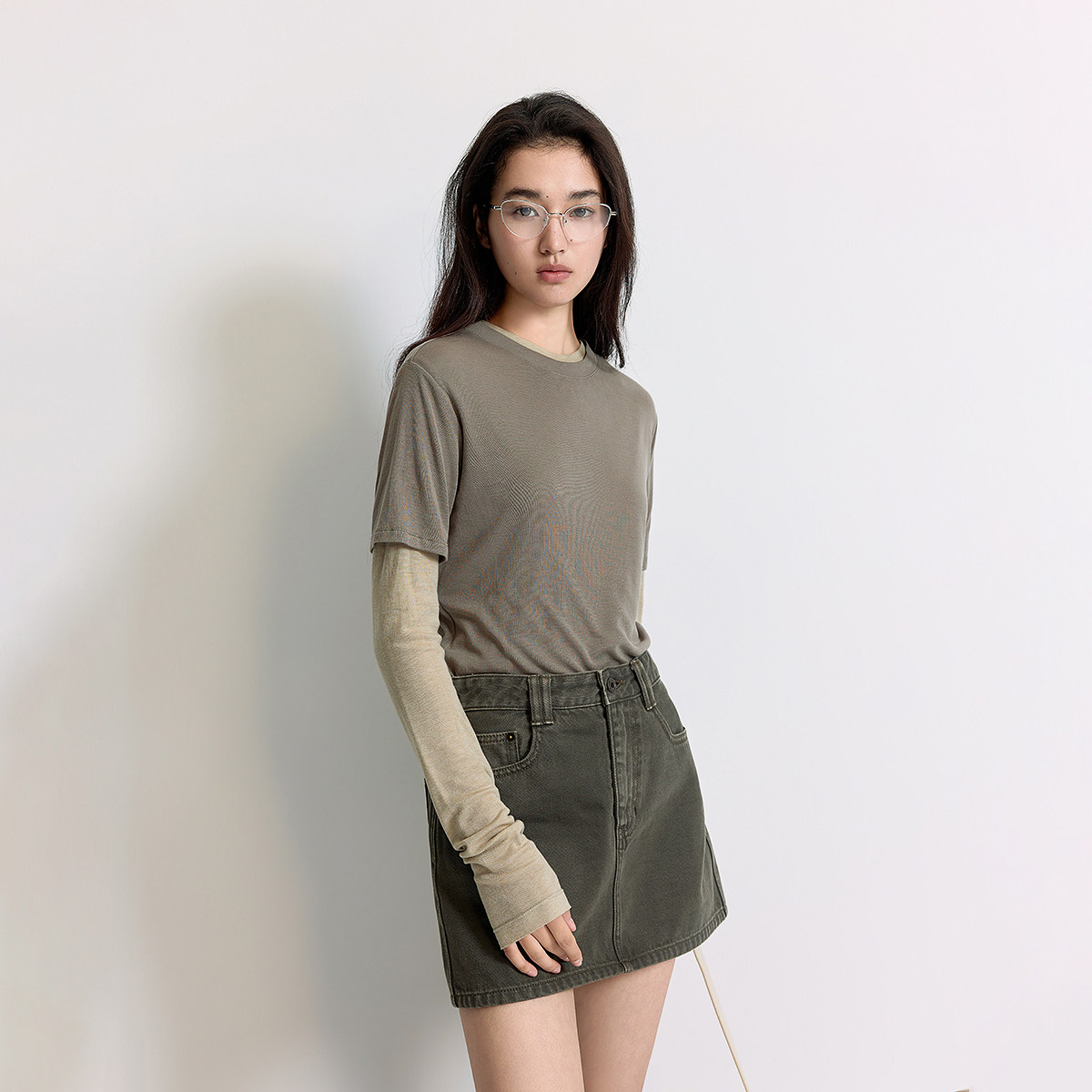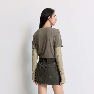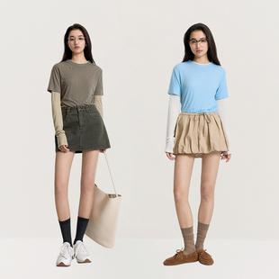 上衣淡人穿搭夏季 t恤两件套装 天丝混纺短袖 OCHIRLY欧时力