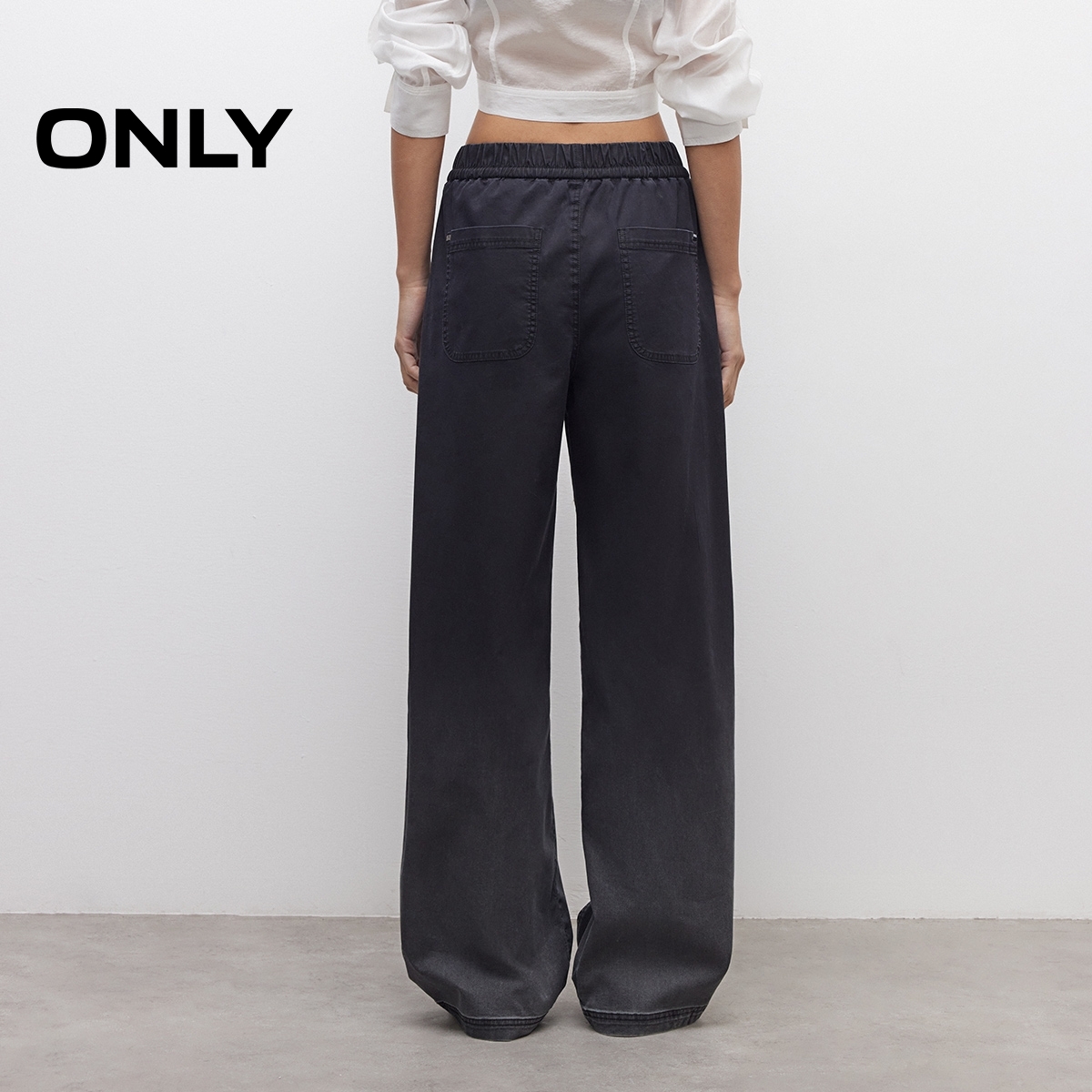 牛仔裤 ONLY2025秋季 长裤 腰部松紧弹力抽绳中腰渐变香蕉裤 女 新款
