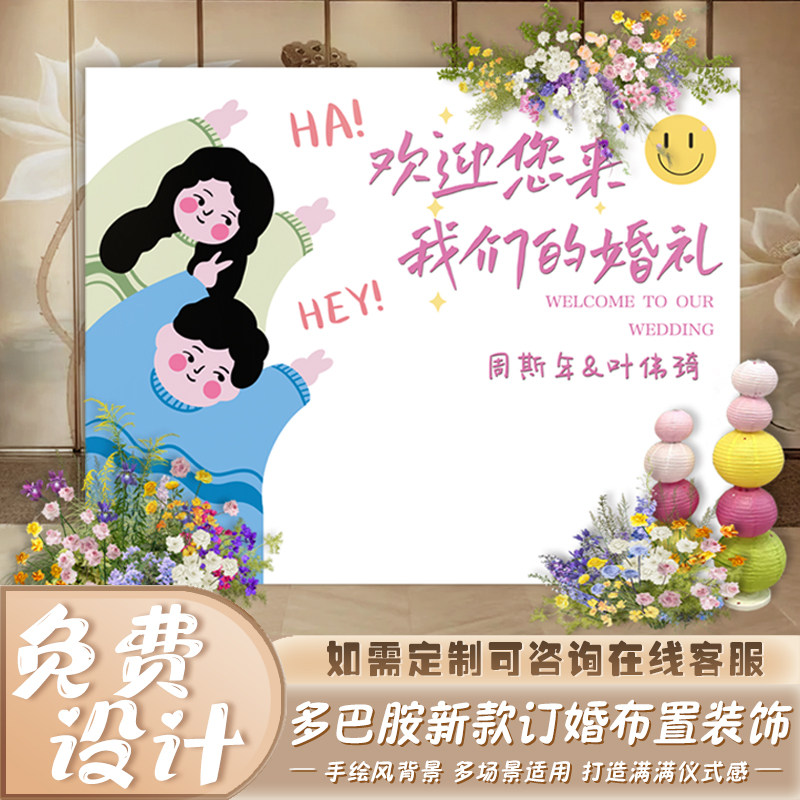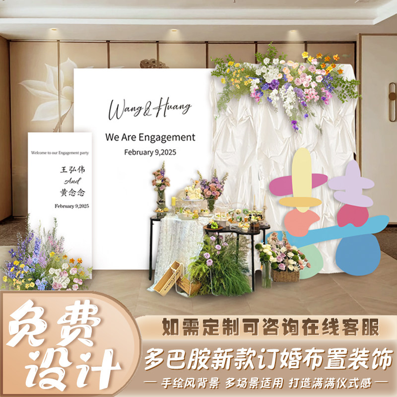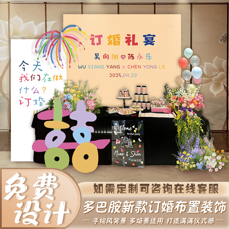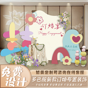 多巴胺网红简约韩系订婚装 饰布置kt板定制原创定制设计订婚背景板