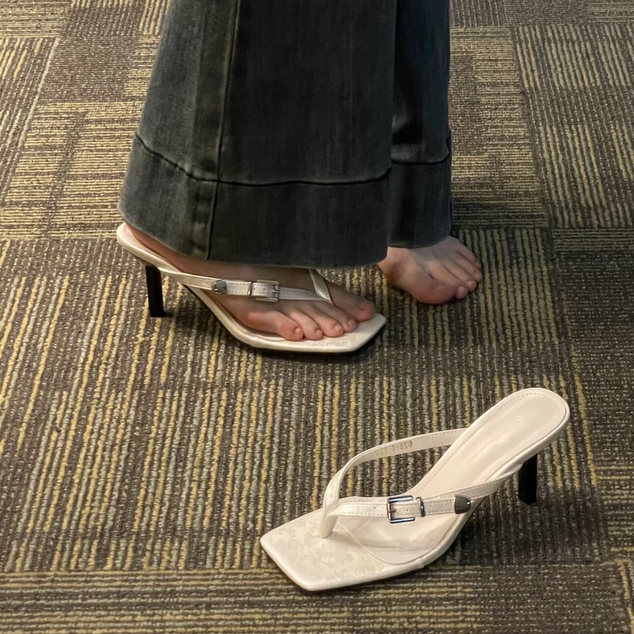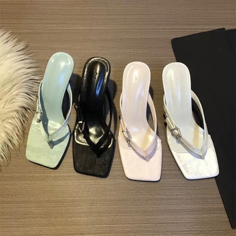7cm显白又好看 细跟高跟方头夹趾露趾皮带扣人字外穿凉拖女 夏季
