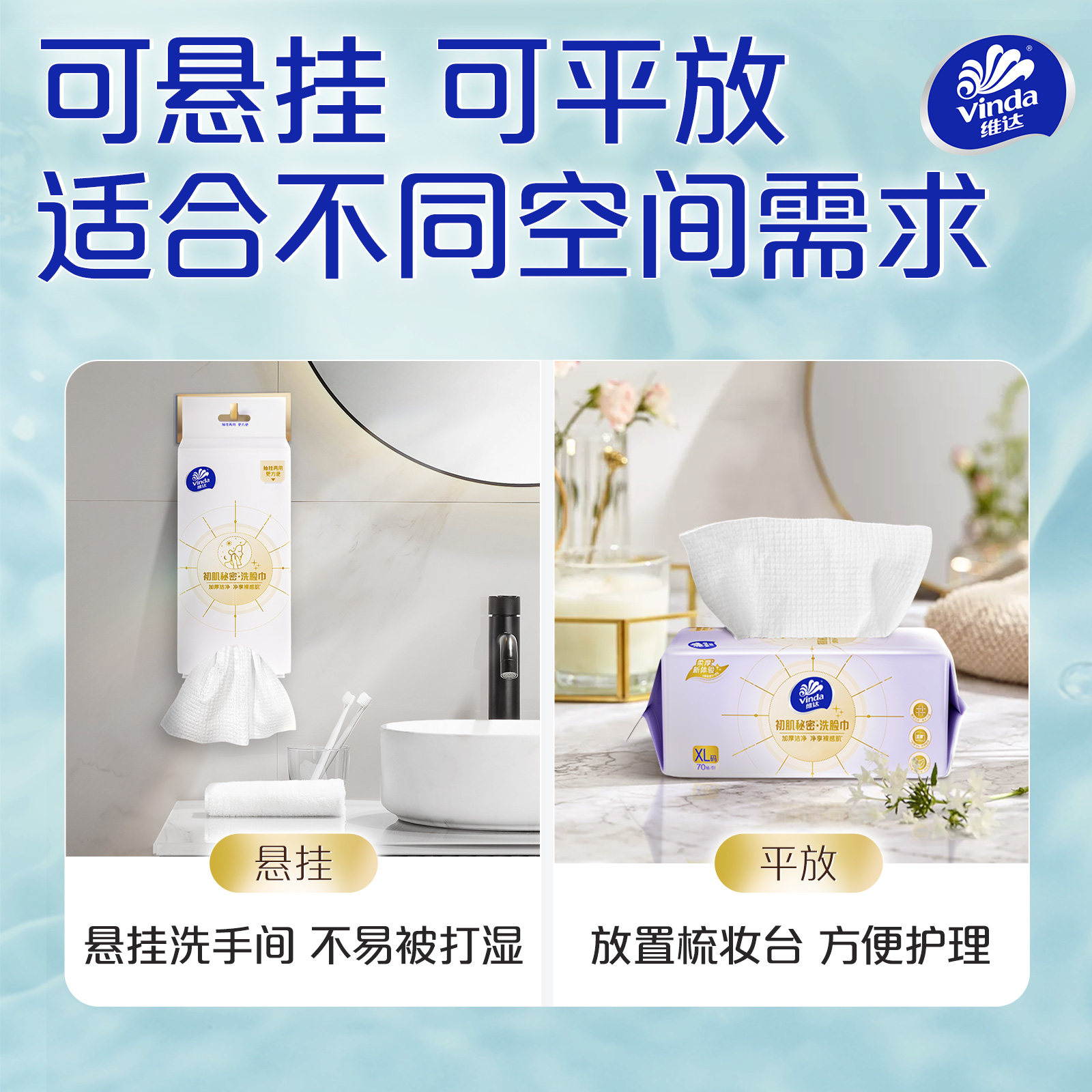 加厚一次性干湿两用洁面巾 洗脸巾420抽6包整箱装 Vinda 维达悬挂式