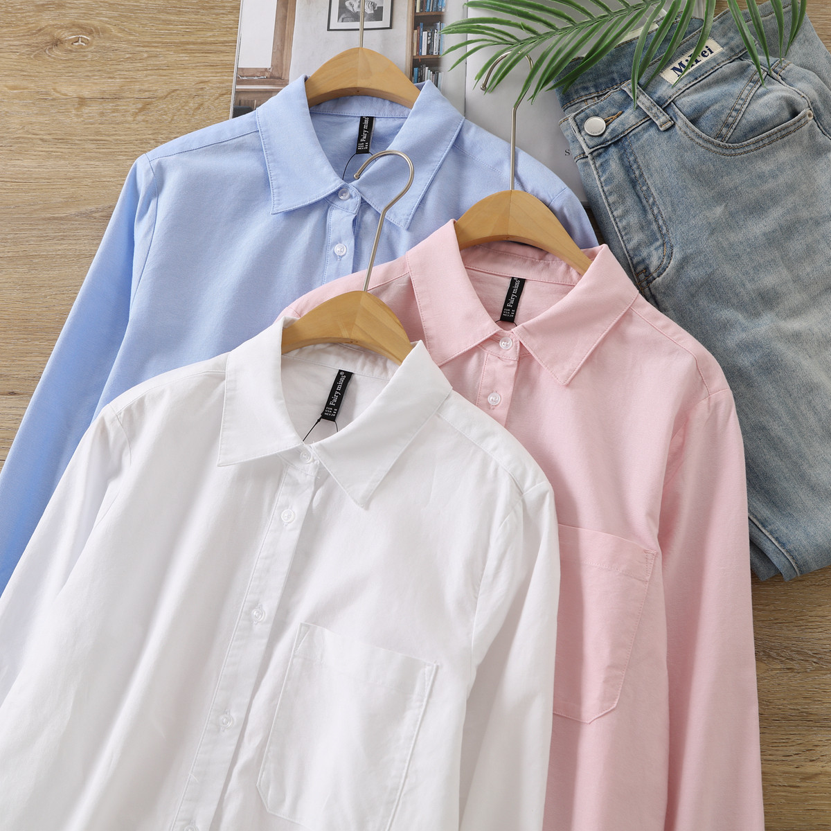 女经典 纯棉衬衫 通勤叠穿衬衣休闲百搭上衣 文艺清新长袖 春秋新款