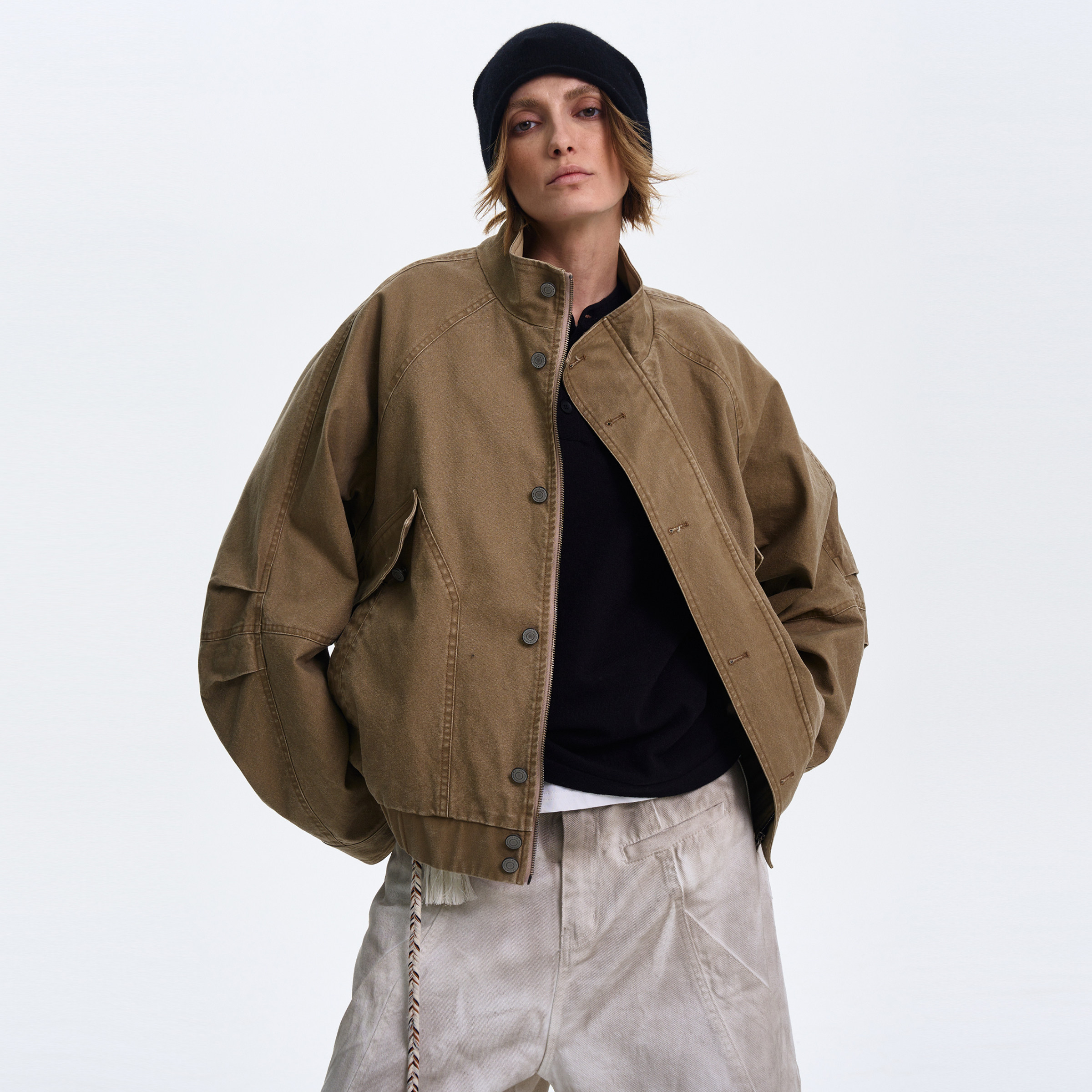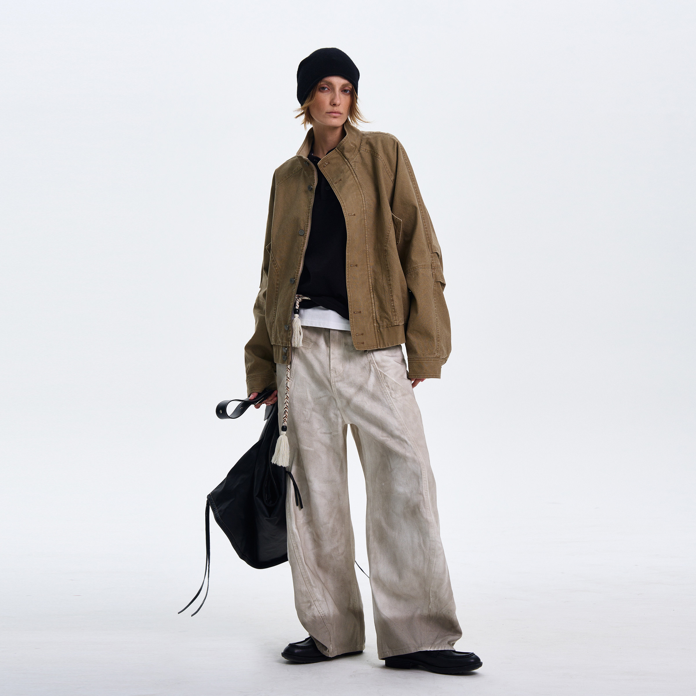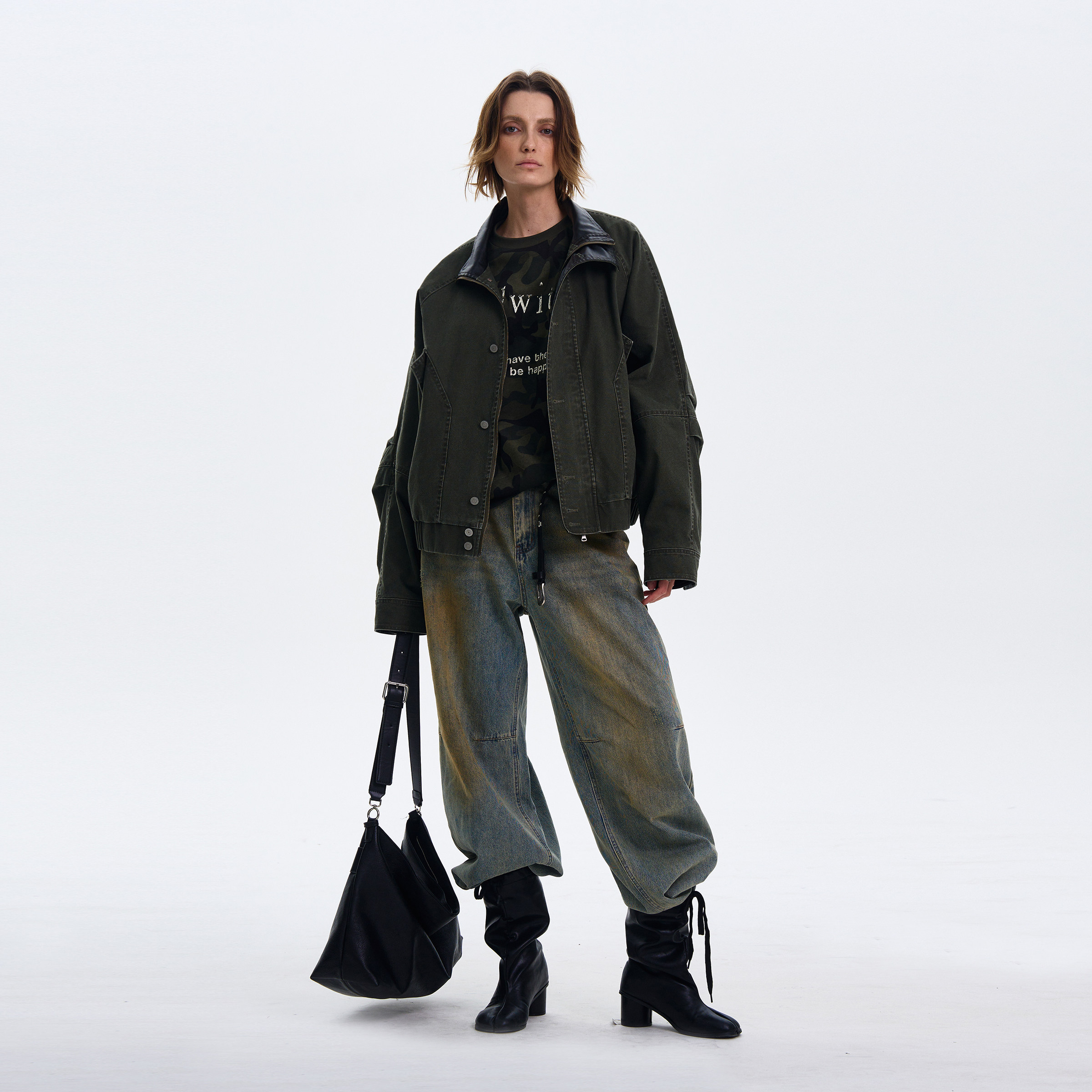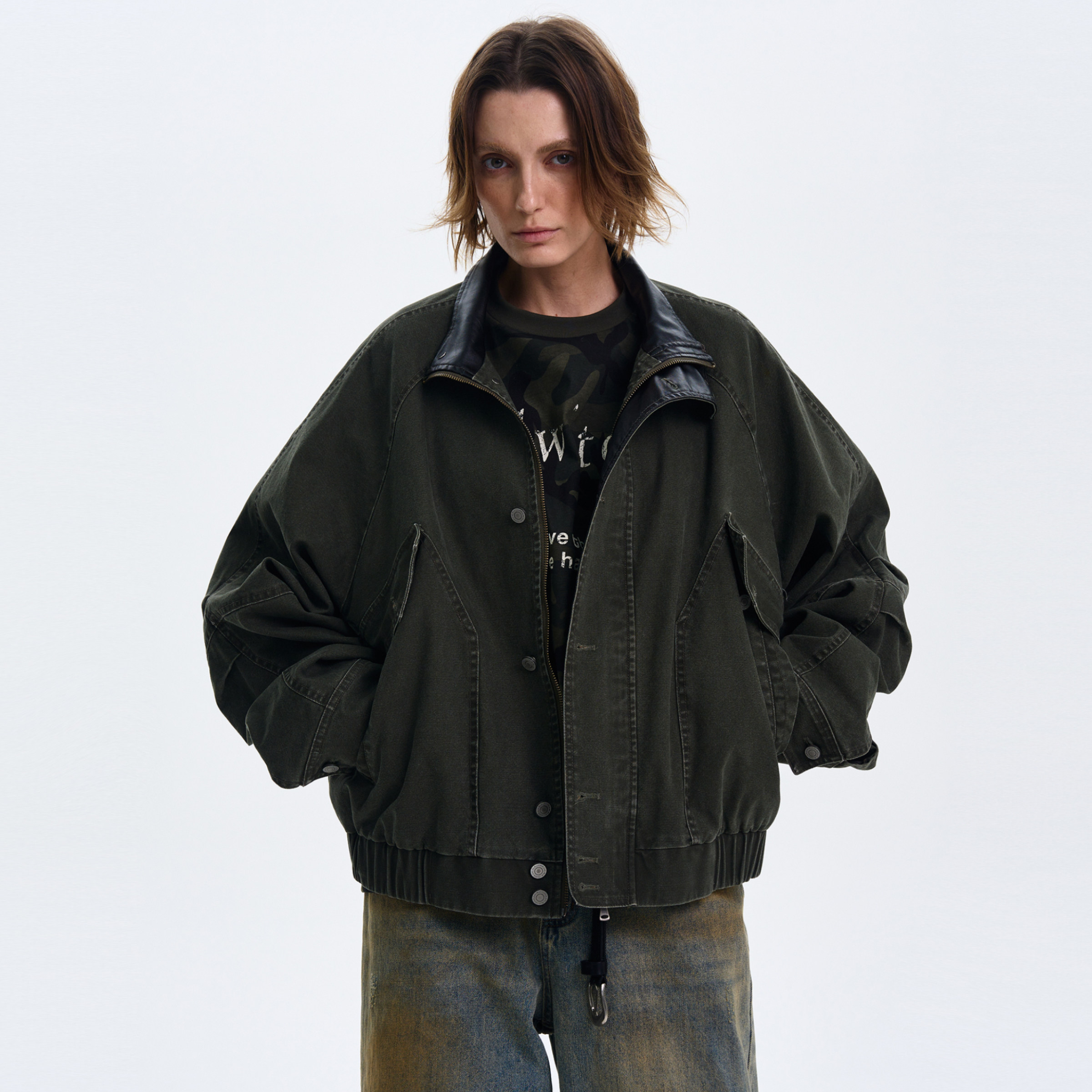 MADWITCH美式 巴恩风撞色皮领夹克男女短宽vintage做旧哈灵顿外套