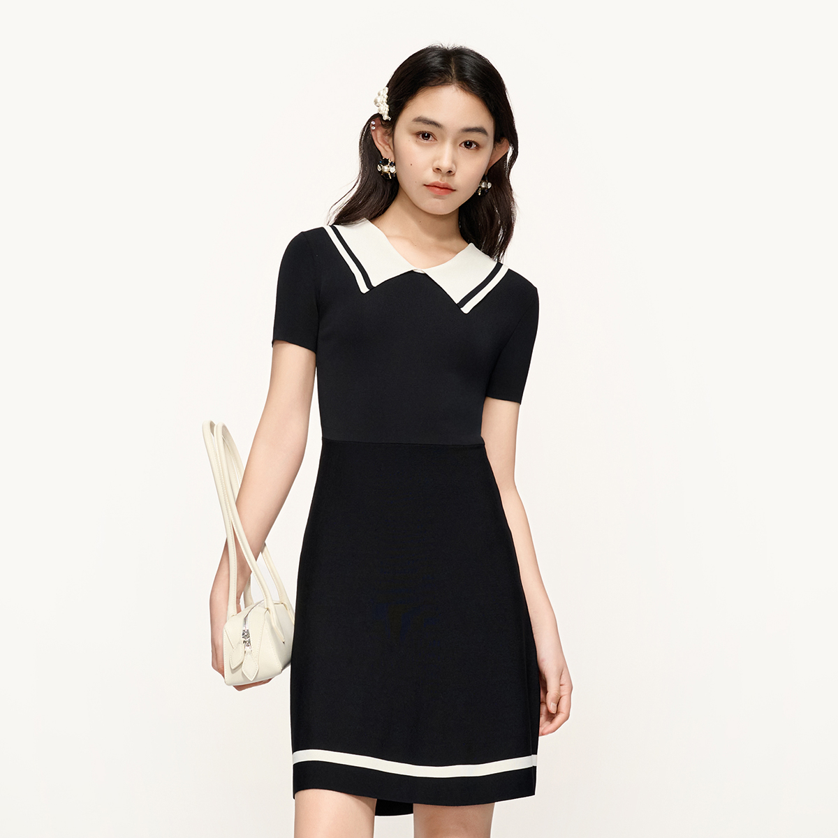 女春装 针织连衣裙女学院风条纹复古小黑裙2025新款 PLUS短袖 FIVE