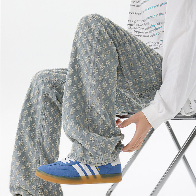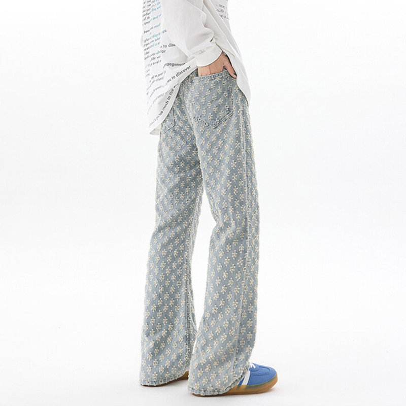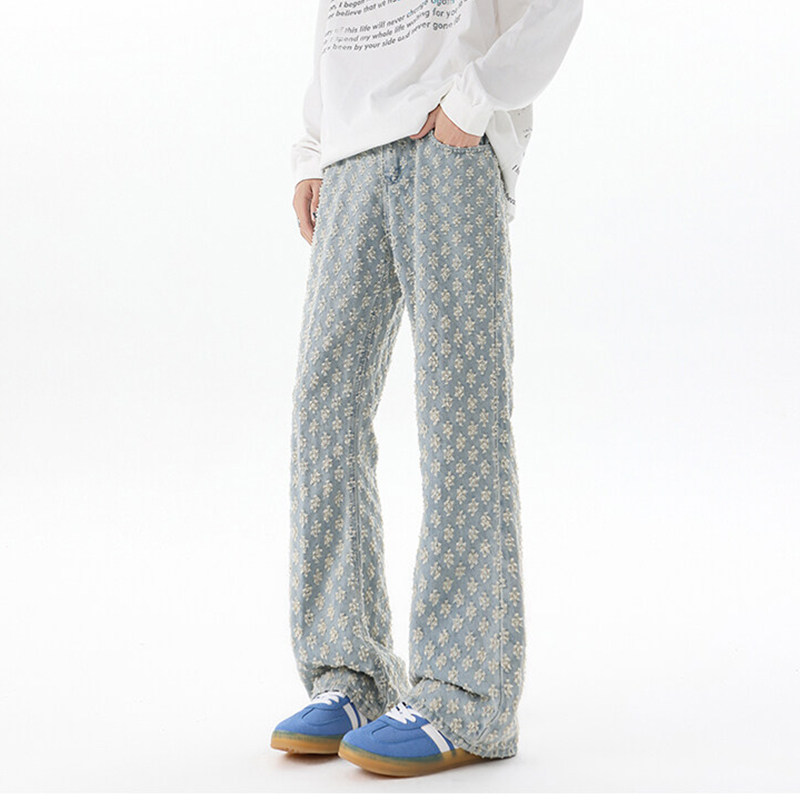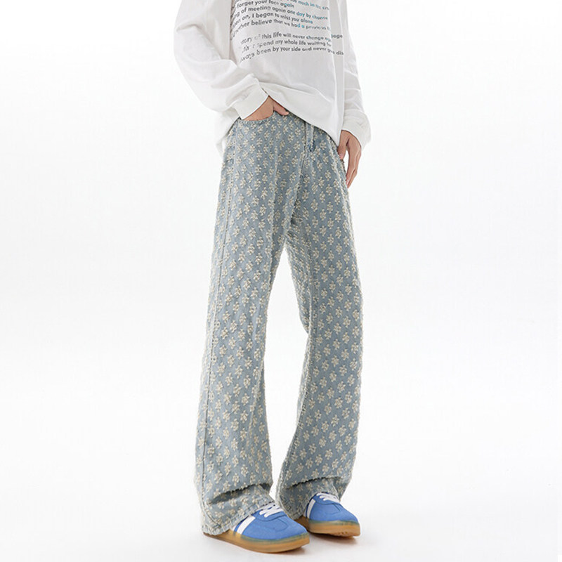 子120CM 提花宽松超长裤 加长微喇牛仔裤 男青少年高个子直筒弯刀裤