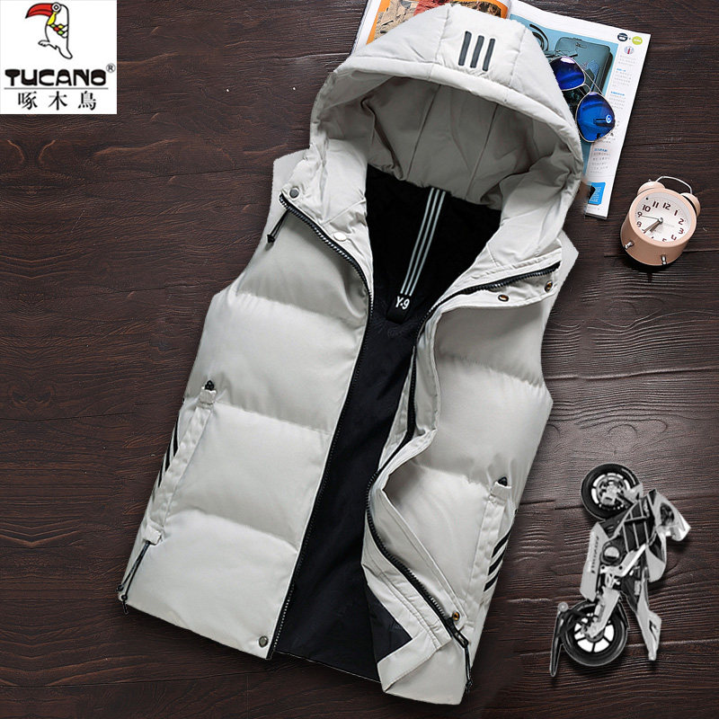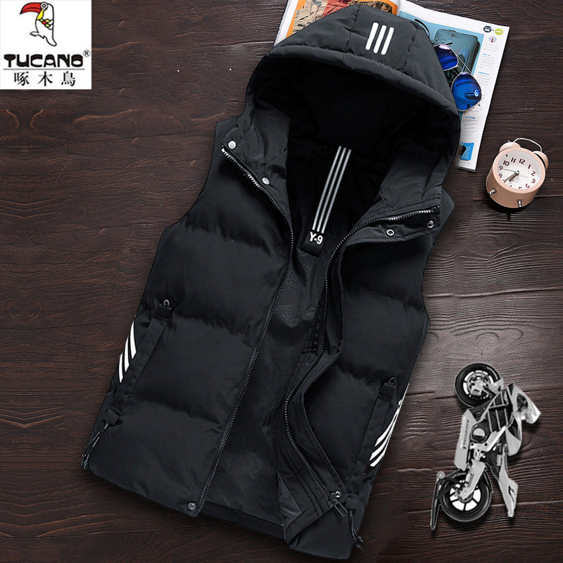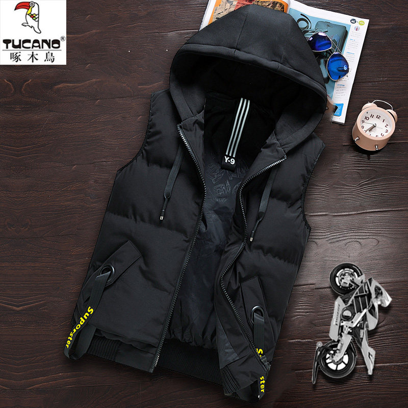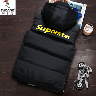 潮流加厚保暖背心学生坎肩连帽马夹外套 韩版 男士 羽绒棉马甲秋冬季