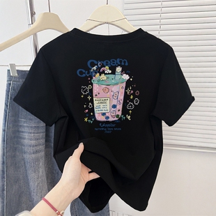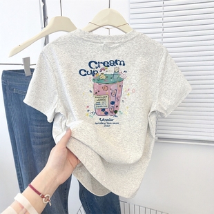 圆领半袖 正肩小个子印花短袖 显瘦短款 新款 上衣ins潮 T恤女2026夏季
