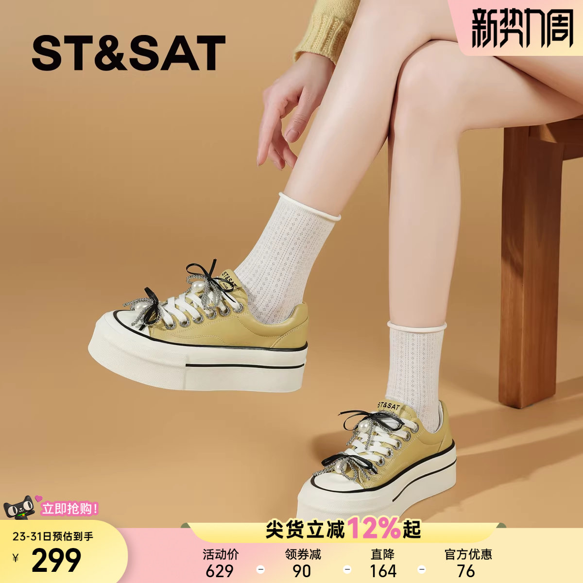 增高松糕鞋 星期六多巴胺厚底板鞋 珍珠系带小白鞋 2025春夏新款 女鞋
