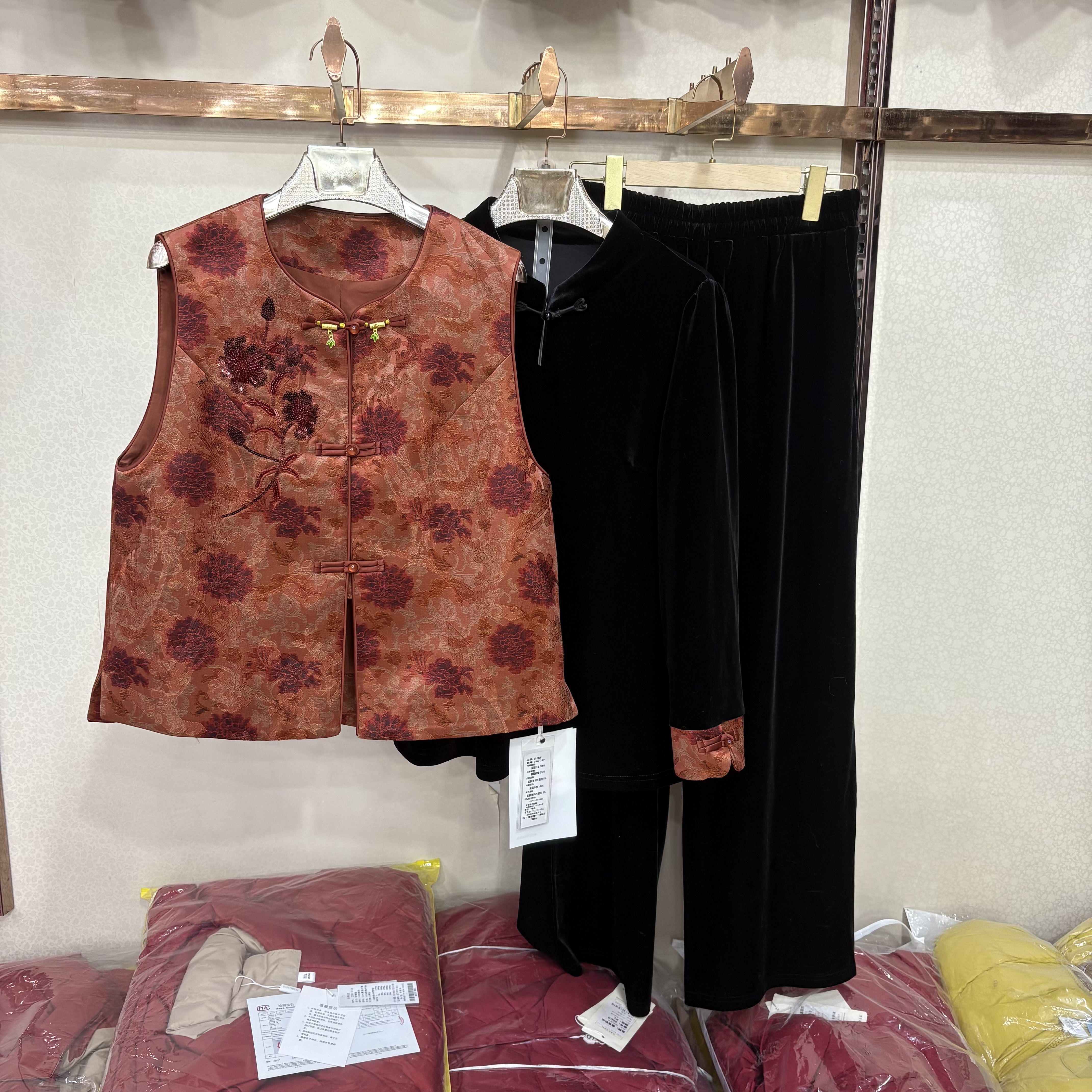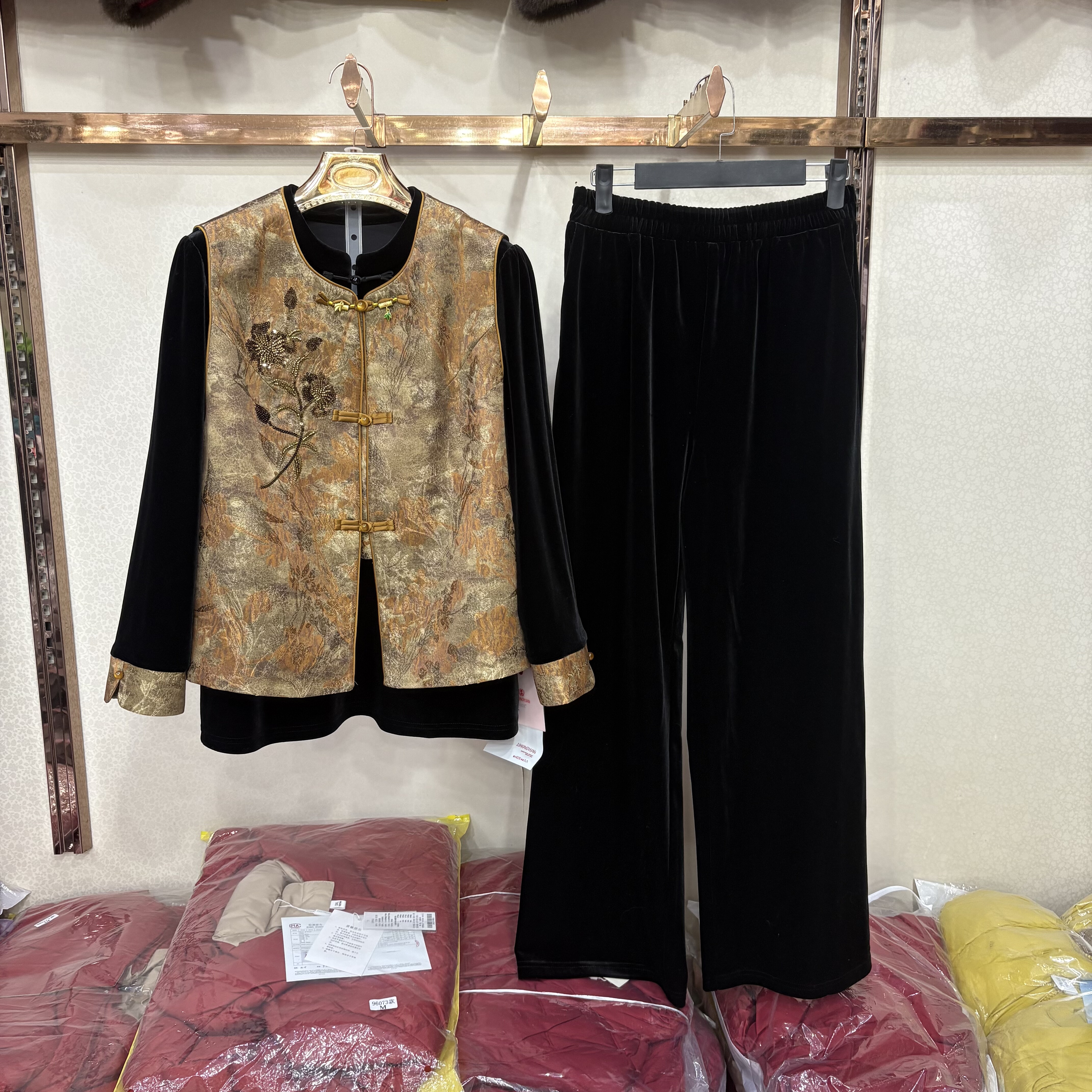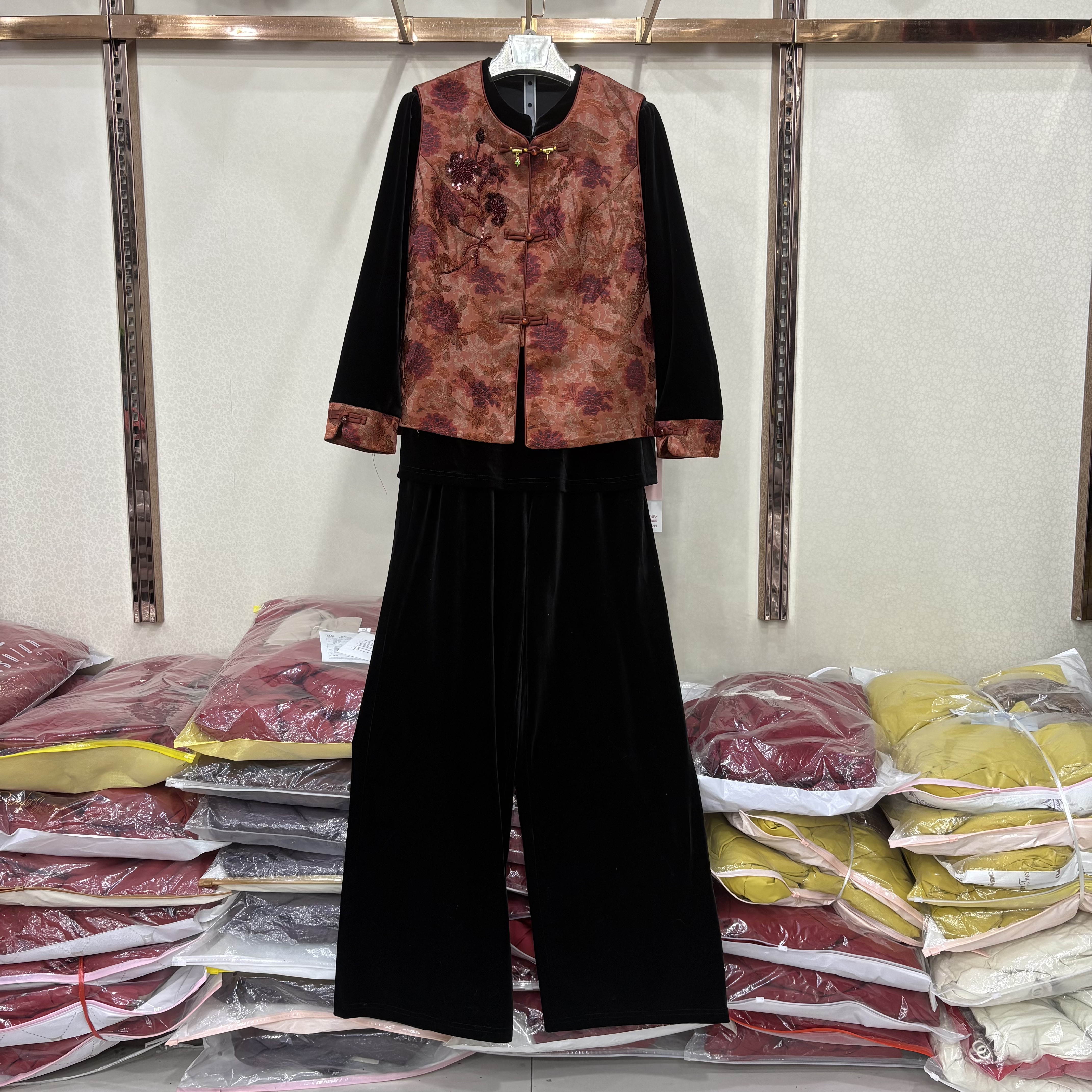 26A 马甲三件套裤 26春新金丝绒衬衫 新中式 女妈妈 直筒裤 商场同款
