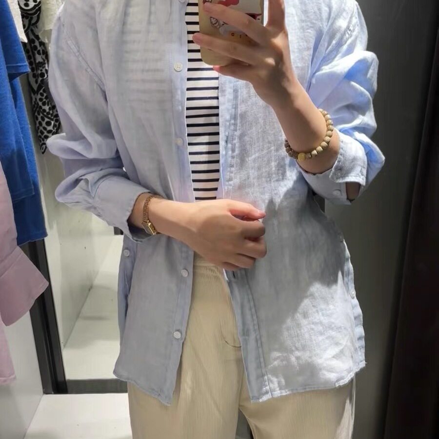 新品 8372058 女装 翻领衬衫 711 宽松亚麻宽松简约长袖 2025春季
