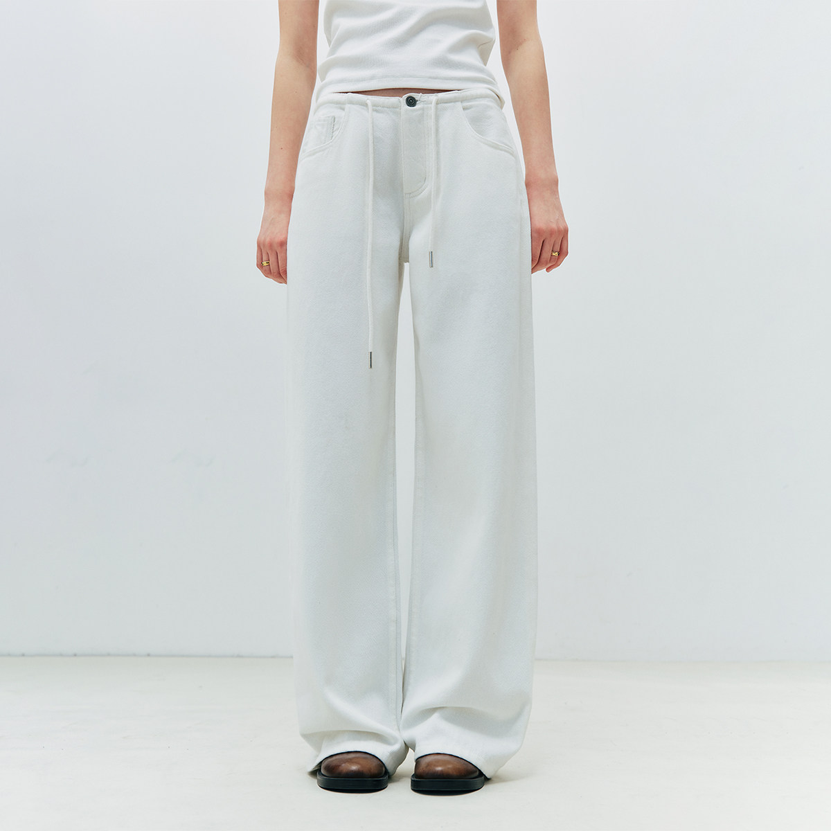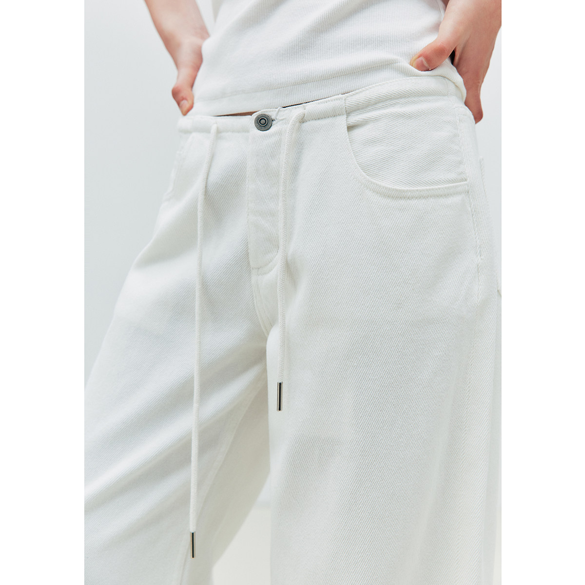 抽绳宽松显瘦阔腿休闲牛仔长裤 胖瘦孕妇皆可穿 人手BI败 镇店