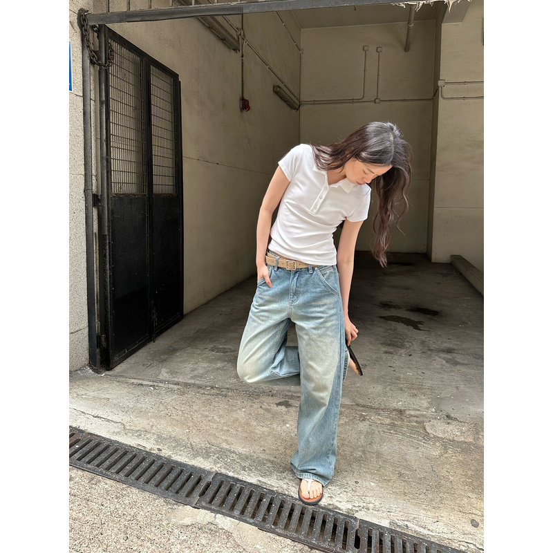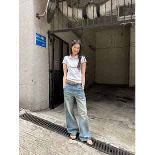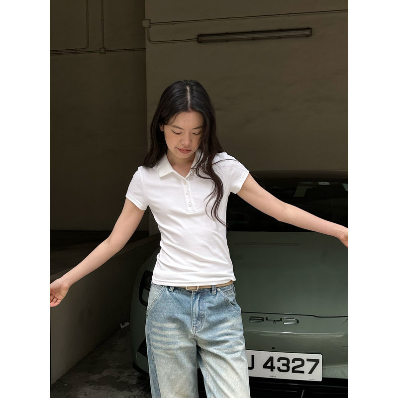 显瘦短袖 UNRETRO美式 polo衫 女夏季 正肩T恤 小个子辣妹短款 清仓