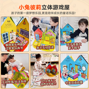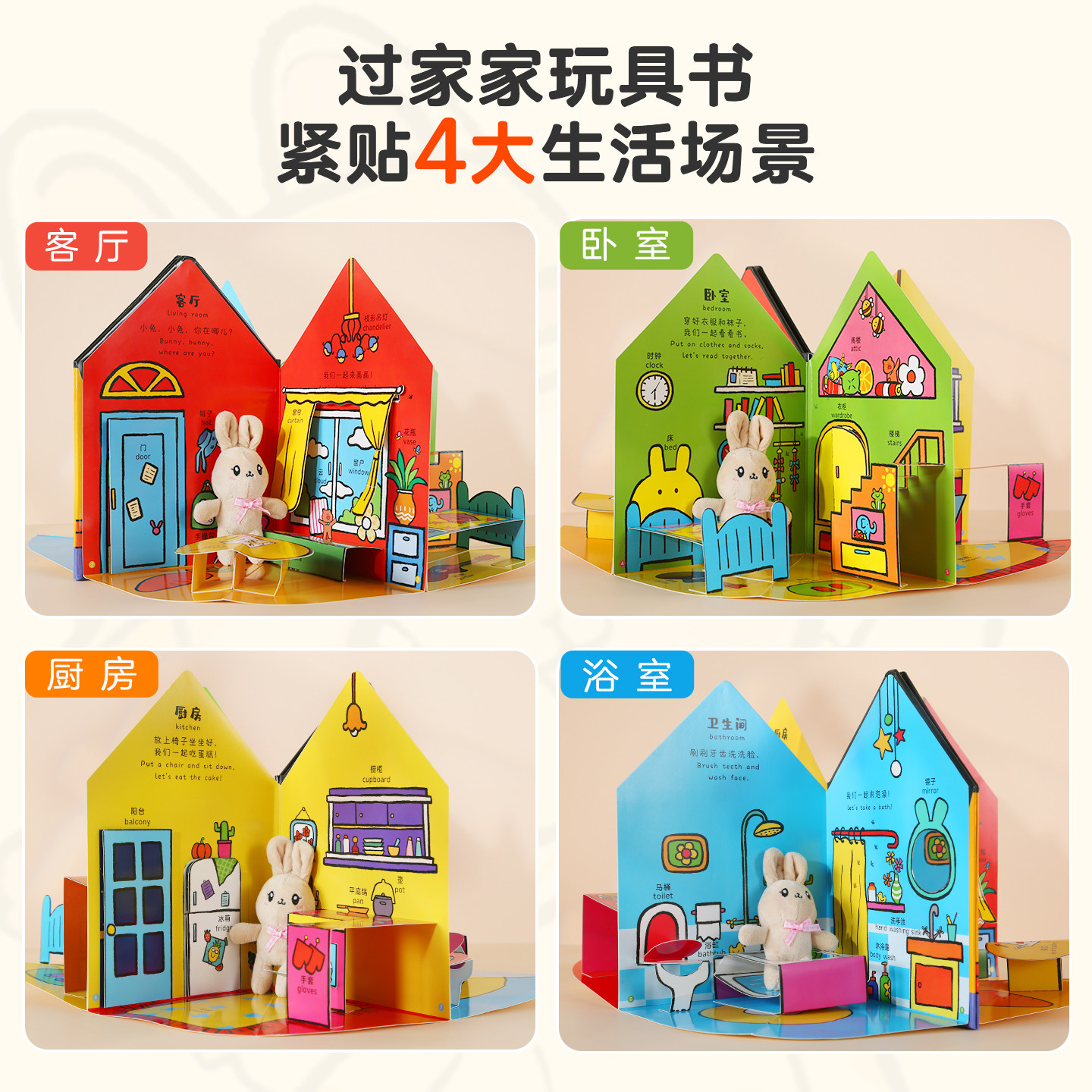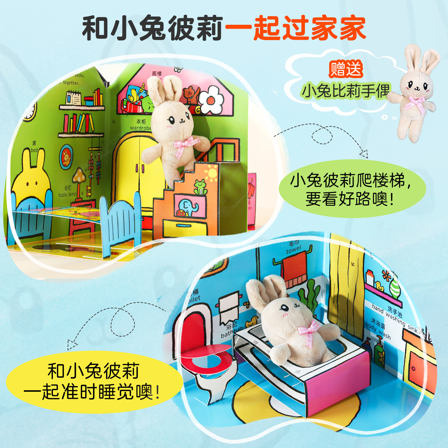 6岁幼儿园男孩女孩过家家中英文双语触摸翻翻书六一儿童节日礼物 小兔彼莉3D机关书 立体游戏屋婴幼儿绘本早教启蒙益智互动玩具0