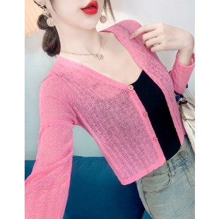 罩衫 防晒披肩女外搭配吊带裙 时尚 短款 薄外套 夏季 小个子开衫 长袖
