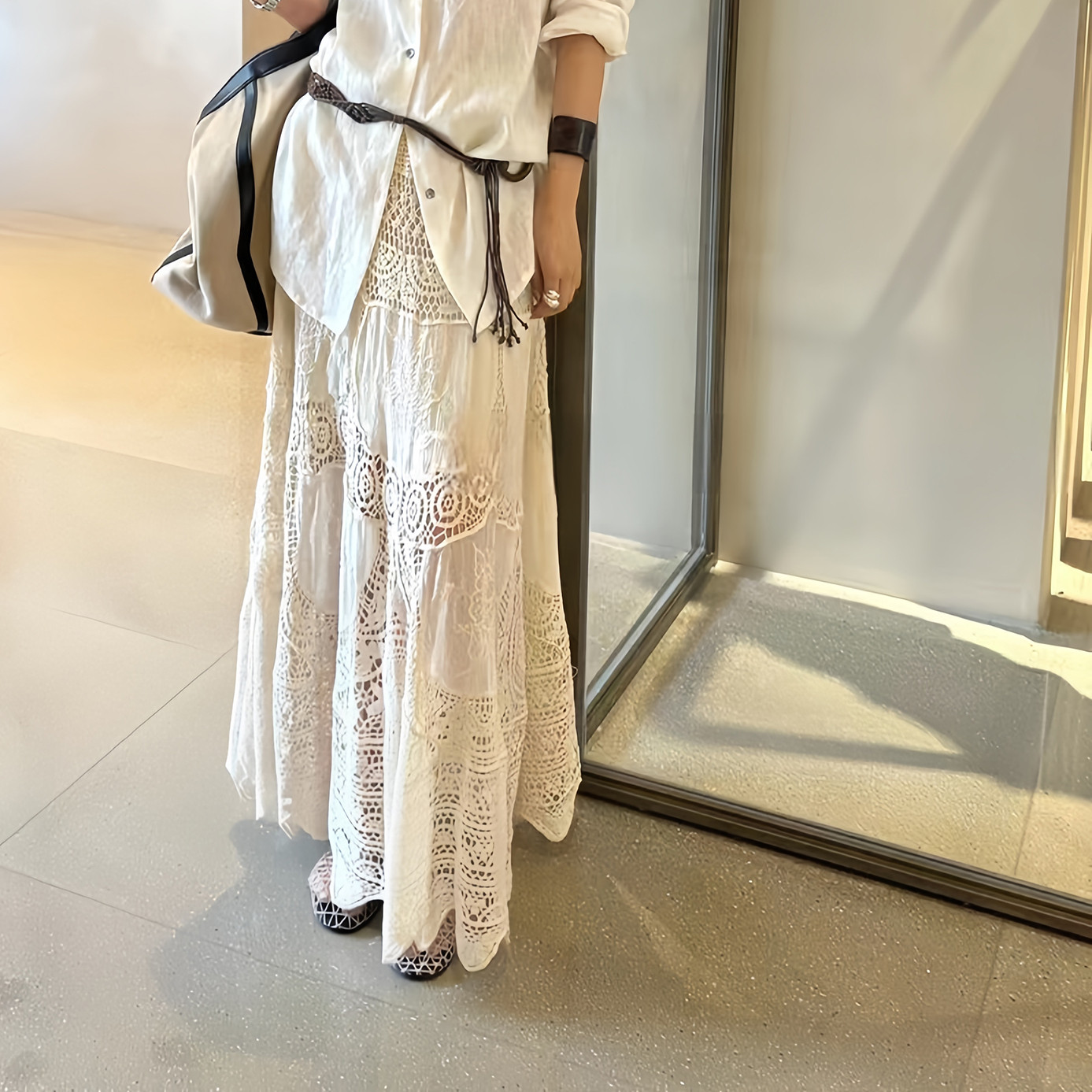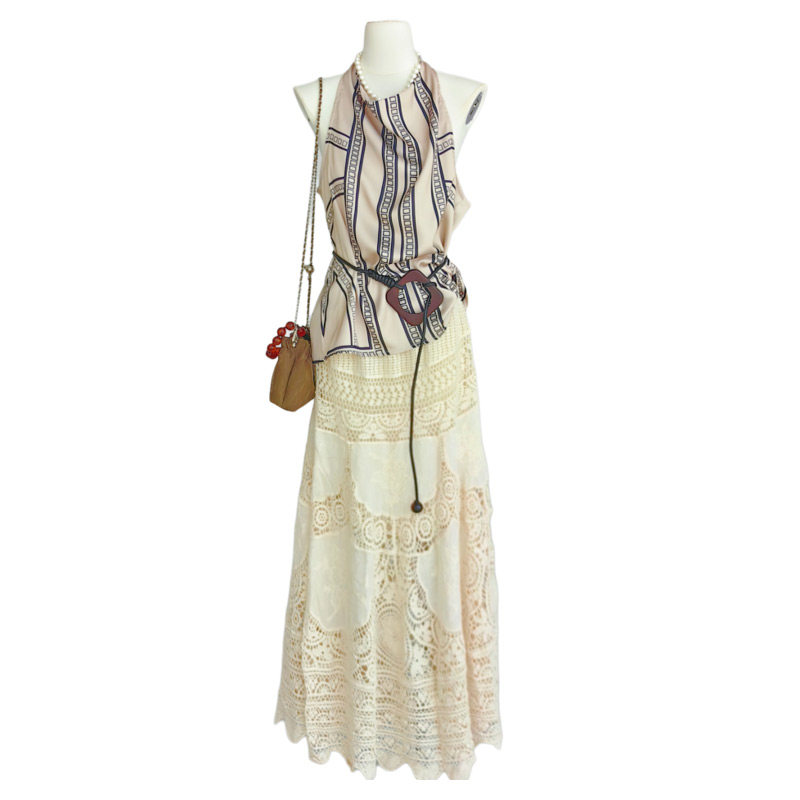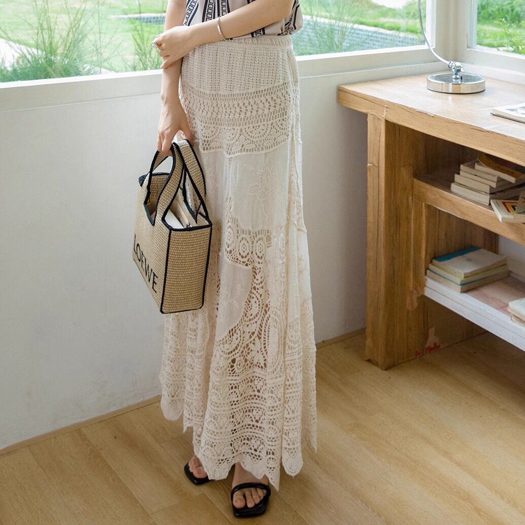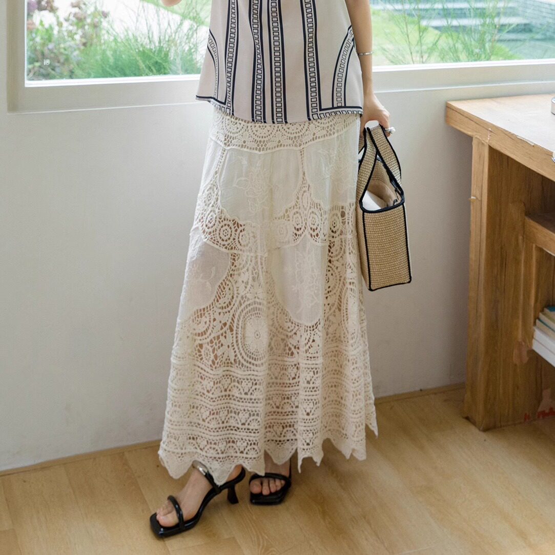 重工波西米亚度假蕾丝钩花半身裙夏新款 设计感小众半身长裙8851