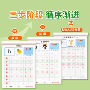 拼音练字帖幼儿园描红本幼小衔接教材全套练字本每日一练拼读训练