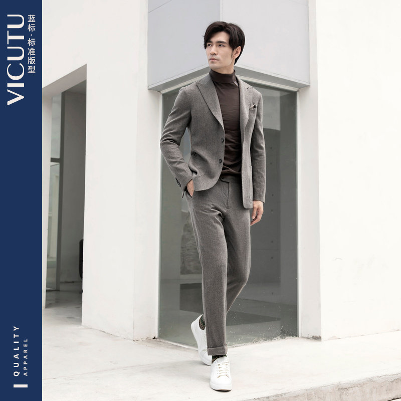 西装 西服套装 休闲通勤大学生面试职业正装 韩版 男 一整套新款