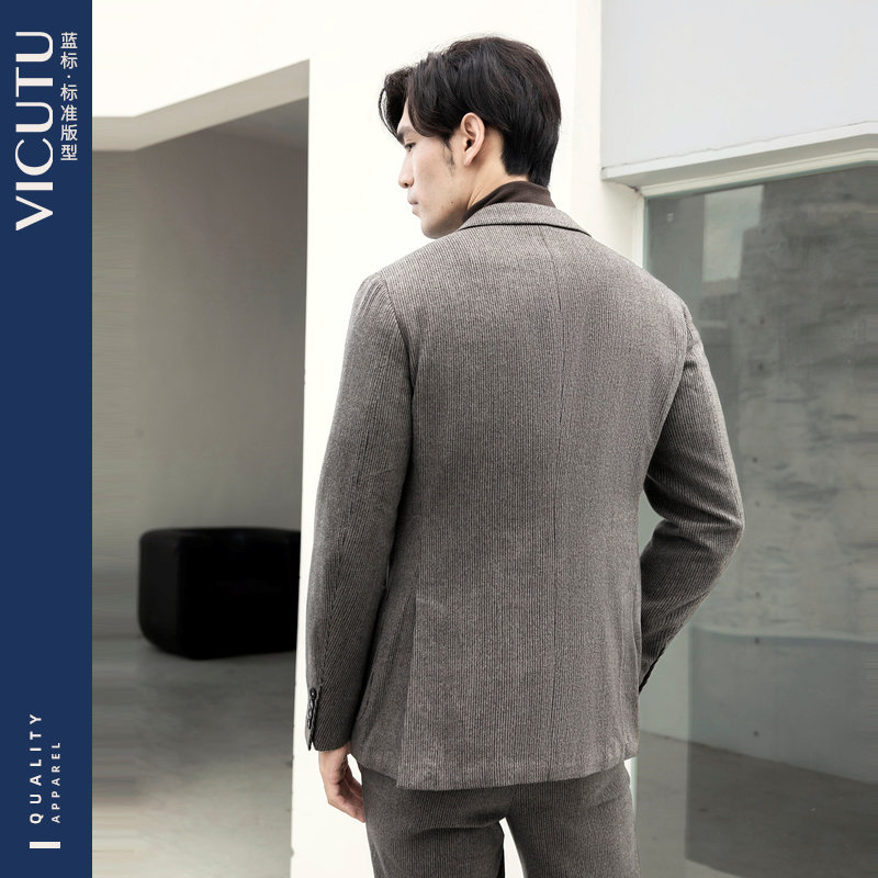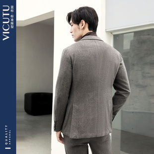 VCFSI简约休闲风男士 外套商务通勤单西卡其色宽松西服 西装