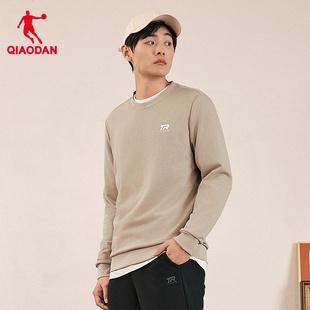 特步卫衣男加绒2025秋冬新款 宽松运动上衣 官方旗舰纯色圆领套头衫
