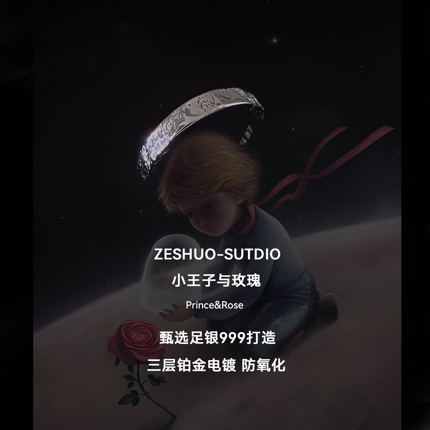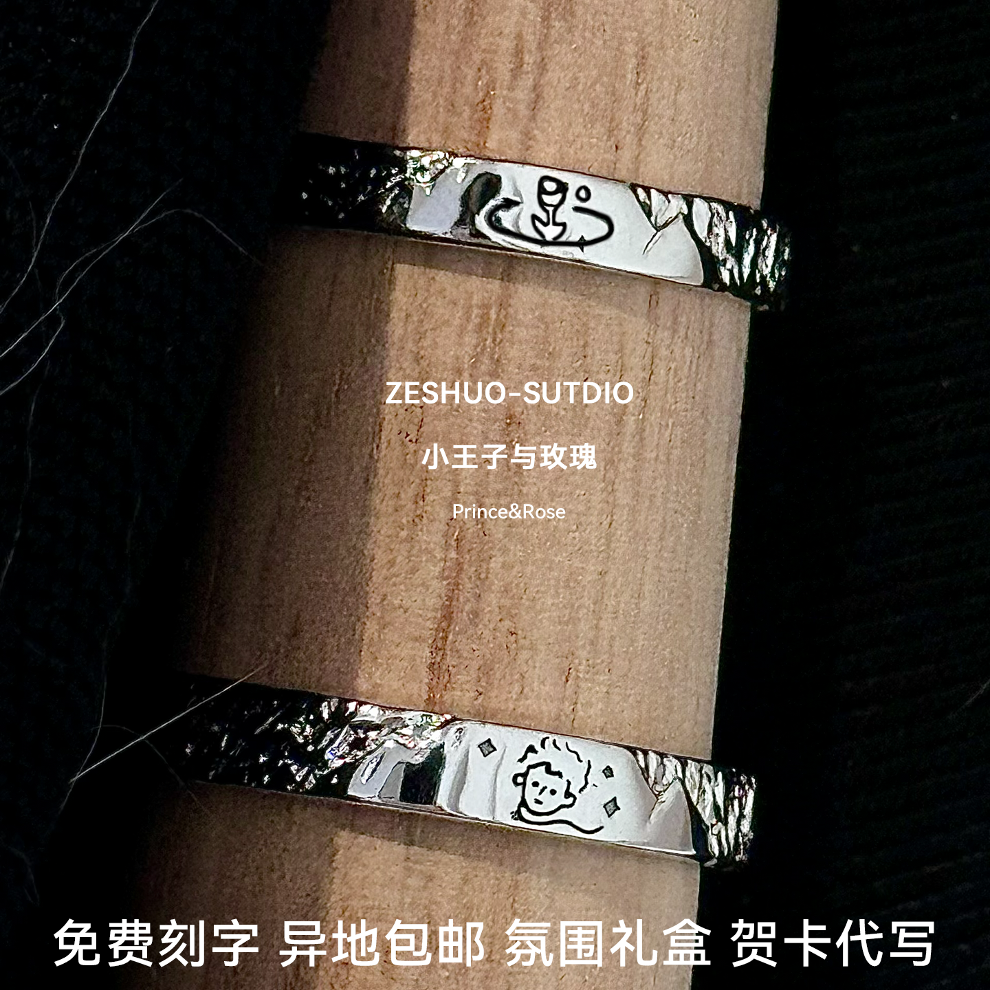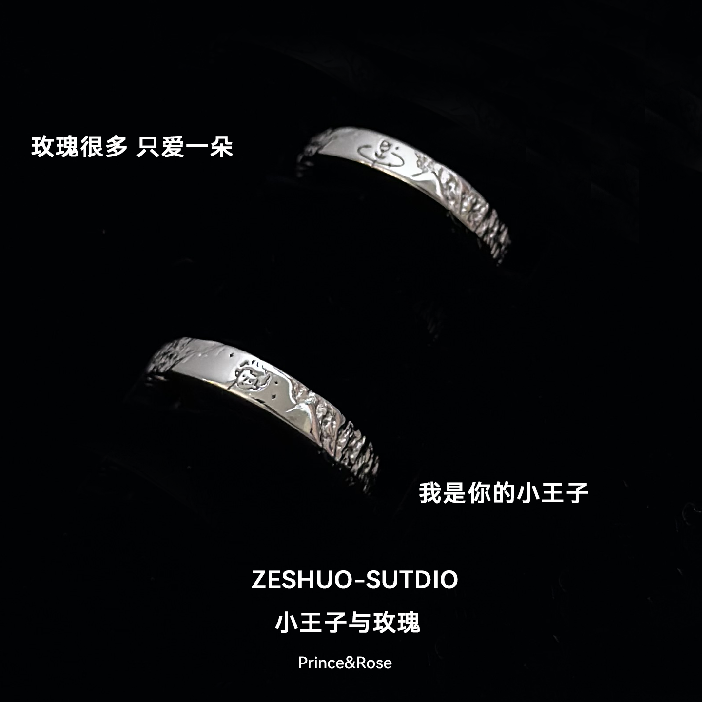 ZESHUO小王子与玫瑰花 999足银情侣对戒轻奢小众纯银戒指2025新款