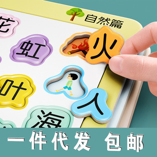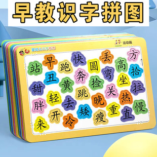 宝宝识字卡片拼图儿童趣味智力识物卡幼儿园早教学习益智玩具拼板