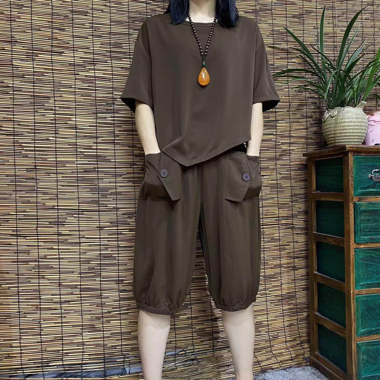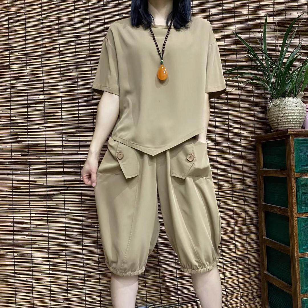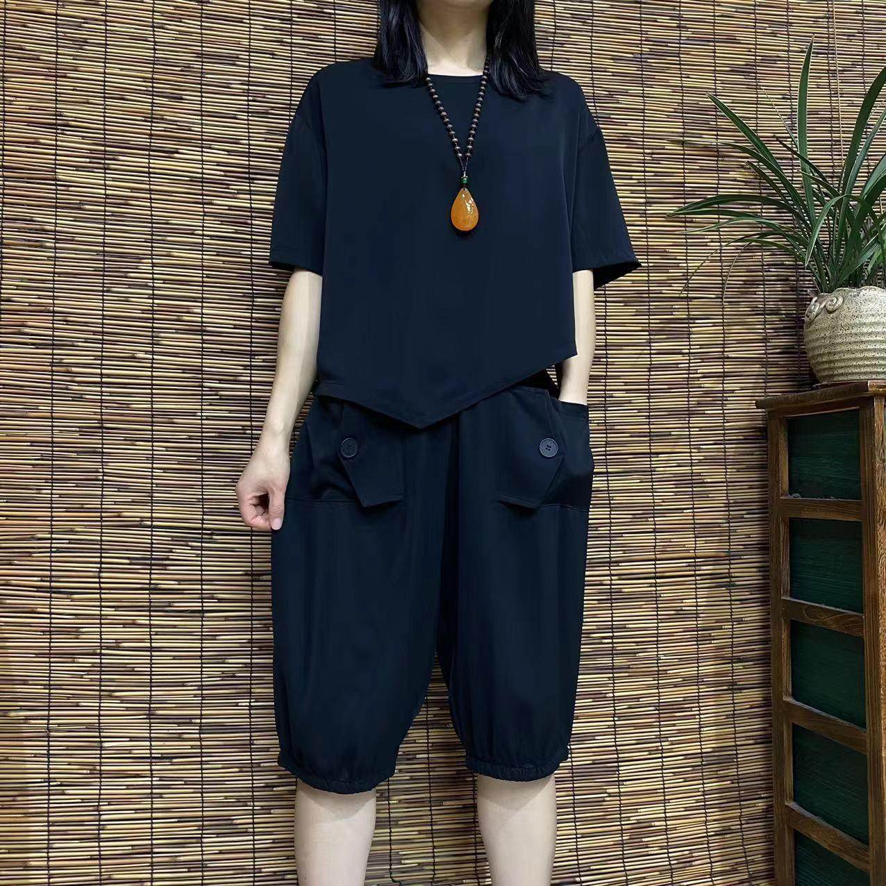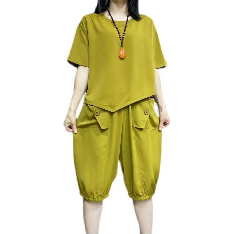 休闲运动套装 五分裤 女夏装 短袖 两件配一整套宽松 时尚 胖mm炸街大码