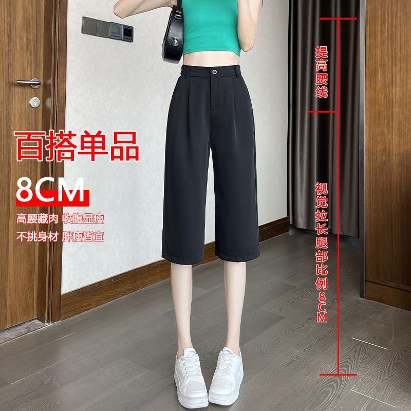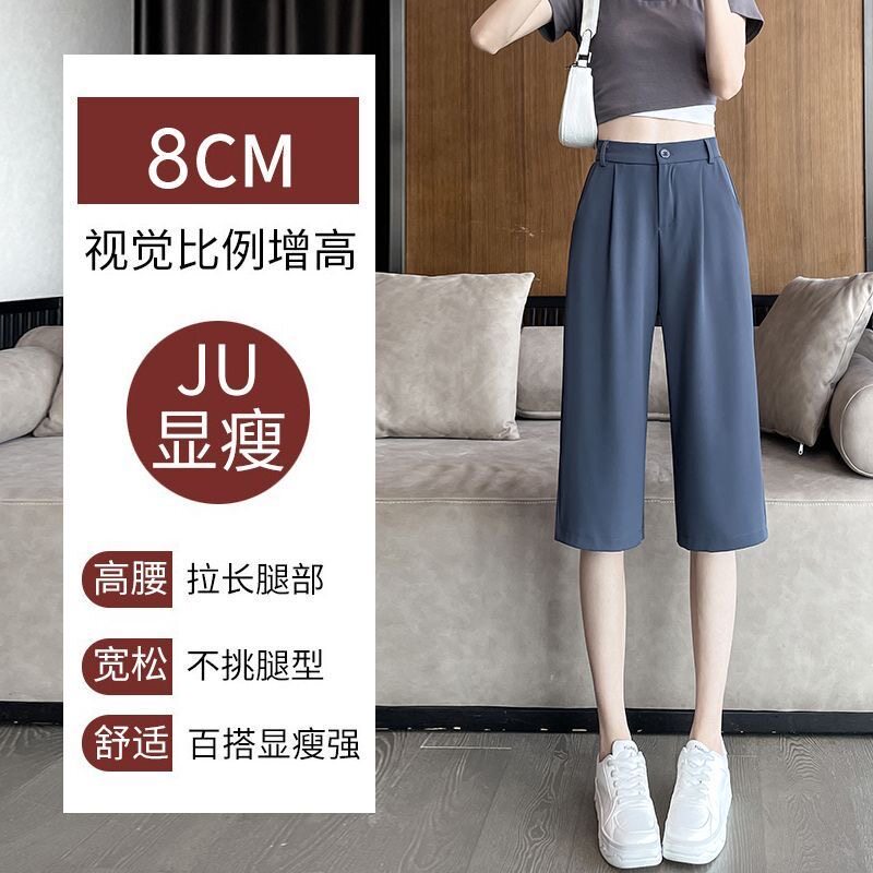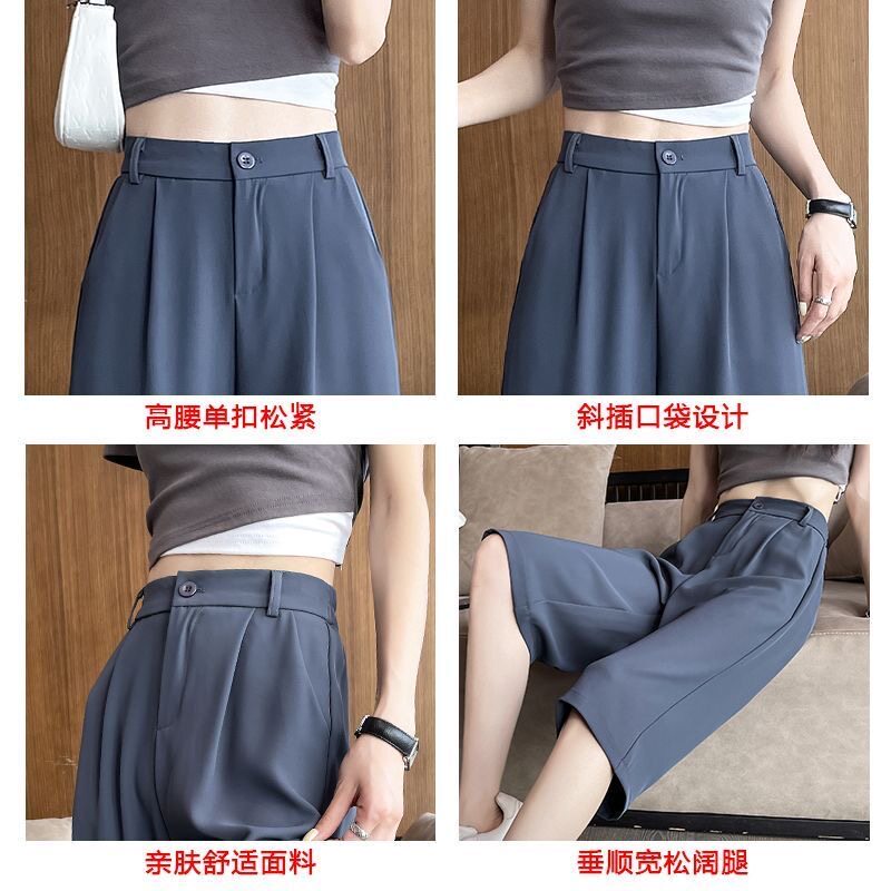 新款 女夏季 胖mm超大码 显瘦冰丝阔腿裤 潮 西装 宽松休闲五分裤 七分裤