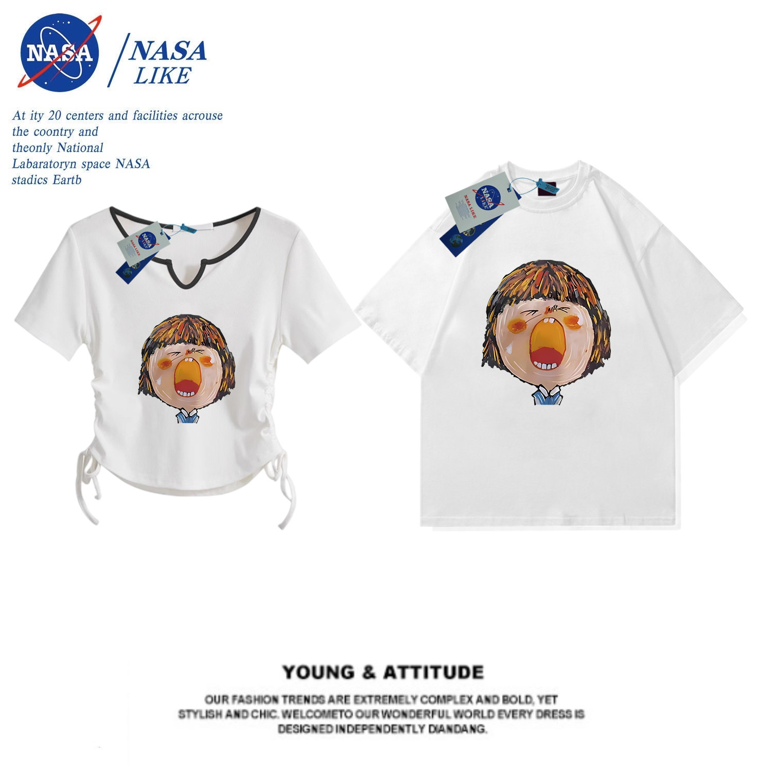 t恤男女潮牌抽绳绑带U领印花上衣 短袖 NASA纯棉情侣装 一长一短夏装