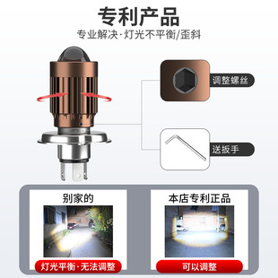 摩托车led大灯泡电动车灯超亮改装 内置12V双爪三爪H4强光透镜射灯