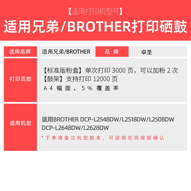 适用兄弟L2648DW粉盒L2628DW打印机硒鼓扫描一体机TN2520碳墨粉盒