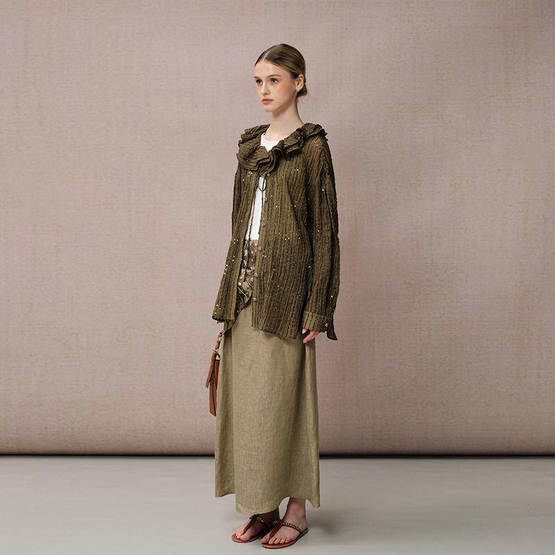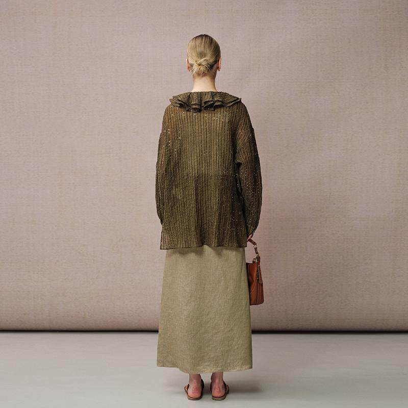 时尚 DIANAVEVINA新款 套装 女长袖 亚麻半身裙 衬衫 戚砚笛同款