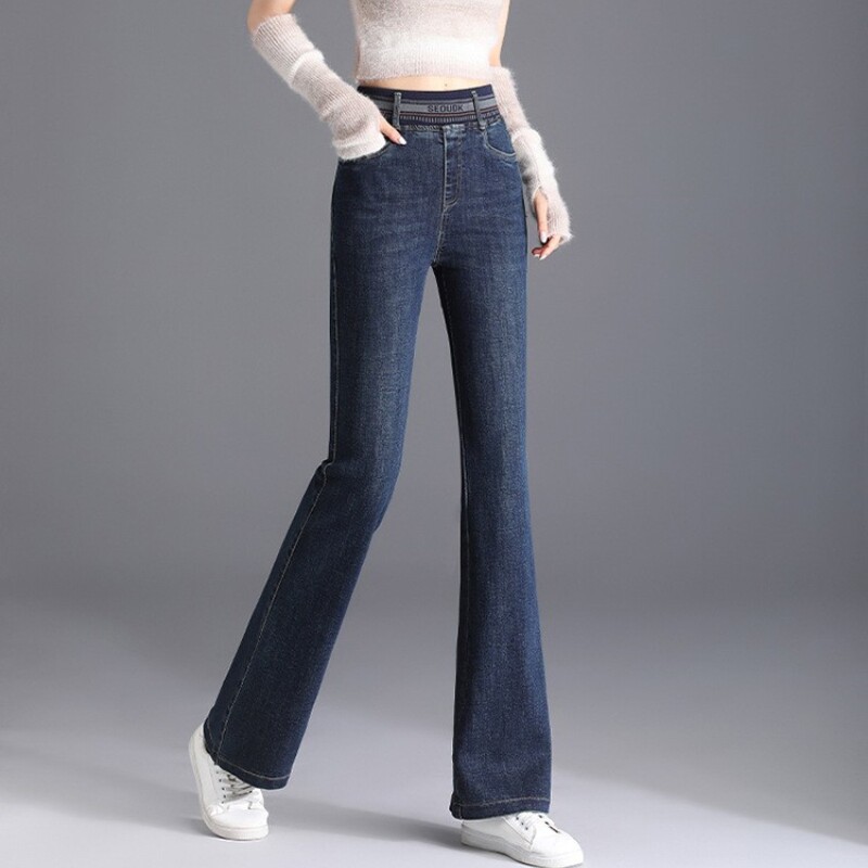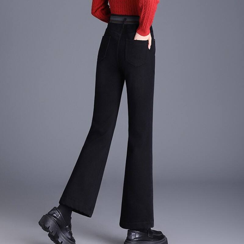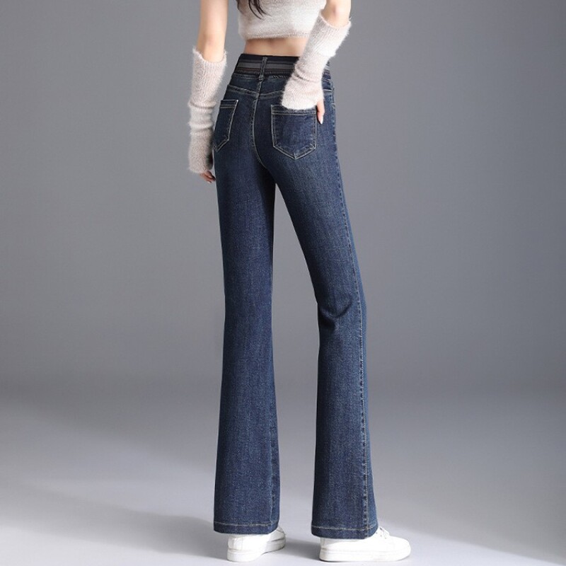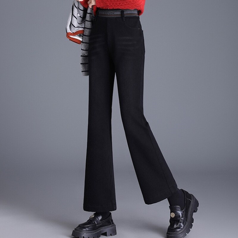 显腿长加绒喇叭长裤 九分弹力牛仔微喇裤 小个子修身 新款 女高腰春季